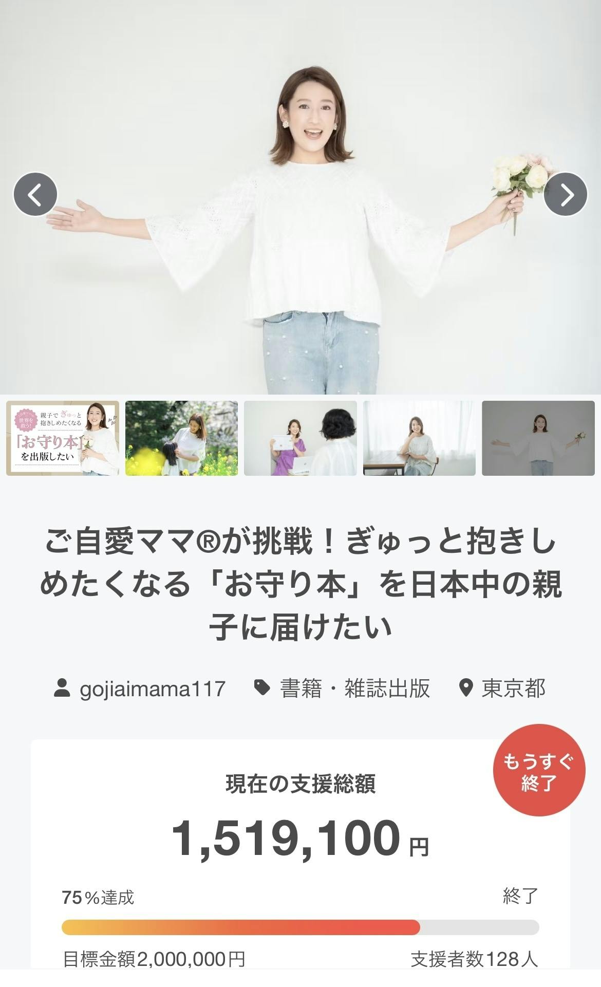 2025/10/19 09:51この度、10月16日をもちまして、書籍『娘へ』の出版に向けたクラウドファンディングが無事終了しました。支援者数128名支援総額1,519,100円みなさまの心温まるご支援により、最後の最後まで、全力で活動に取り組むことができました。まずは、応援してくださったすべての方へ、心より感謝申し上げます。ご支援、誠にありがとうございました。クラウドファンディングは、「人数」や「金額」という数字であらわされる分、そこに評価が向かいがちです。その数字が目標となり、活動が盛り上がる良さがある反面、数字よりも大切なものが見えにくくなってしまうのではと心配もしていました。しかし、実際にこうして活動してみると、人数や金額などを超えて、みなさまからいただく一つひとつの応援メッセージや、金額に関係ないそのお気持ちがとてもありがたく、感動の連続でした。もちろん、応援してくださっているみなさまとしては、「なんとしても夢に向かって目標達成してほしい!」と願いを込めてくださったと思います。そこに対しては、不甲斐なく、目標達成には至らなかったことを大変申し訳なく思っています。ただ、今回あえてクラウドファンディングに挑戦した理由は資金集めの側面だけでなく、以下のようなものもあります。・ご自愛の輪を広げるための仲間づくり・リターン品という形でのサービス提供・活動や本について広く知っていただくこと・ご支援という形でプロジェクトに参加していただき、世界を変える一端を担っていただくことこのような観点で見ると、今回私の目標は達成できたと捉えています。これは、決して私一人では成し得なかったものであり、みなさまお一人おひとりのさまざまな想いの賜物です。本当に、ありがとうございました。電子書籍は来年1月17日、紙の書籍は3月頃に出版予定です。ペーパーバック書籍を含むリターン品は、3月以降の発送。それ以外のものでセッション系のものは、これから順次日程調整のご案内メールを送らせていただきます。100人の方がそれぞれ10名ずつにお伝えいただけると、それだけで1,000人もの人に届きます!今後はこの本を活用し、旧来の講座をブラッシュアップした「ご自愛ママ®︎メソッド講座」を来年4月から開催予定です。引き続き、どうか温かく見守り、応援していただけますと幸いです。この度は、ご支援誠にありがとうございました。【追加ご支援について】今回、目標金額未達成のため、期間終了後個別にご連絡いただいた方からは、ありがたく追加ご支援をちょうだいしています。方法は、お振込またはPayPayです。ご検討いただける方は、クラファンサイト内のメッセージ機能、またはインスタグラムのDM、LINEなどからご連絡をよろしくお願いいたします。詳細ご案内させていただきます。よろしくお願いいたします。 もっと見る