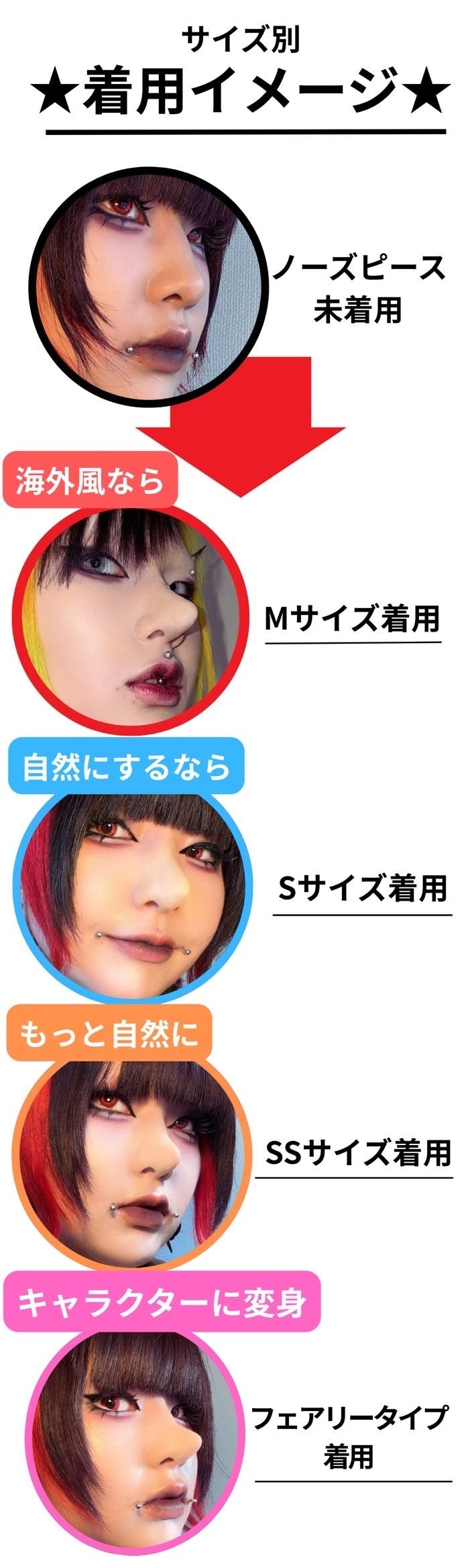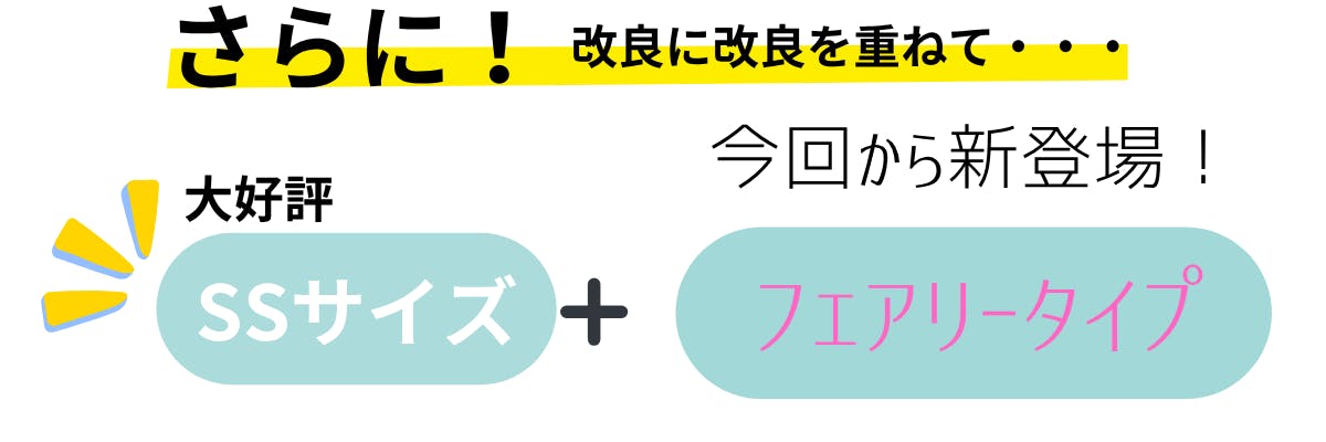 また、今回は自然に使いやすいノーマルタイプ3サイズ「5mm」「7mm」「11mm」と、可愛らしいフェアリータイプ「9mm」をご用意しましたしました!