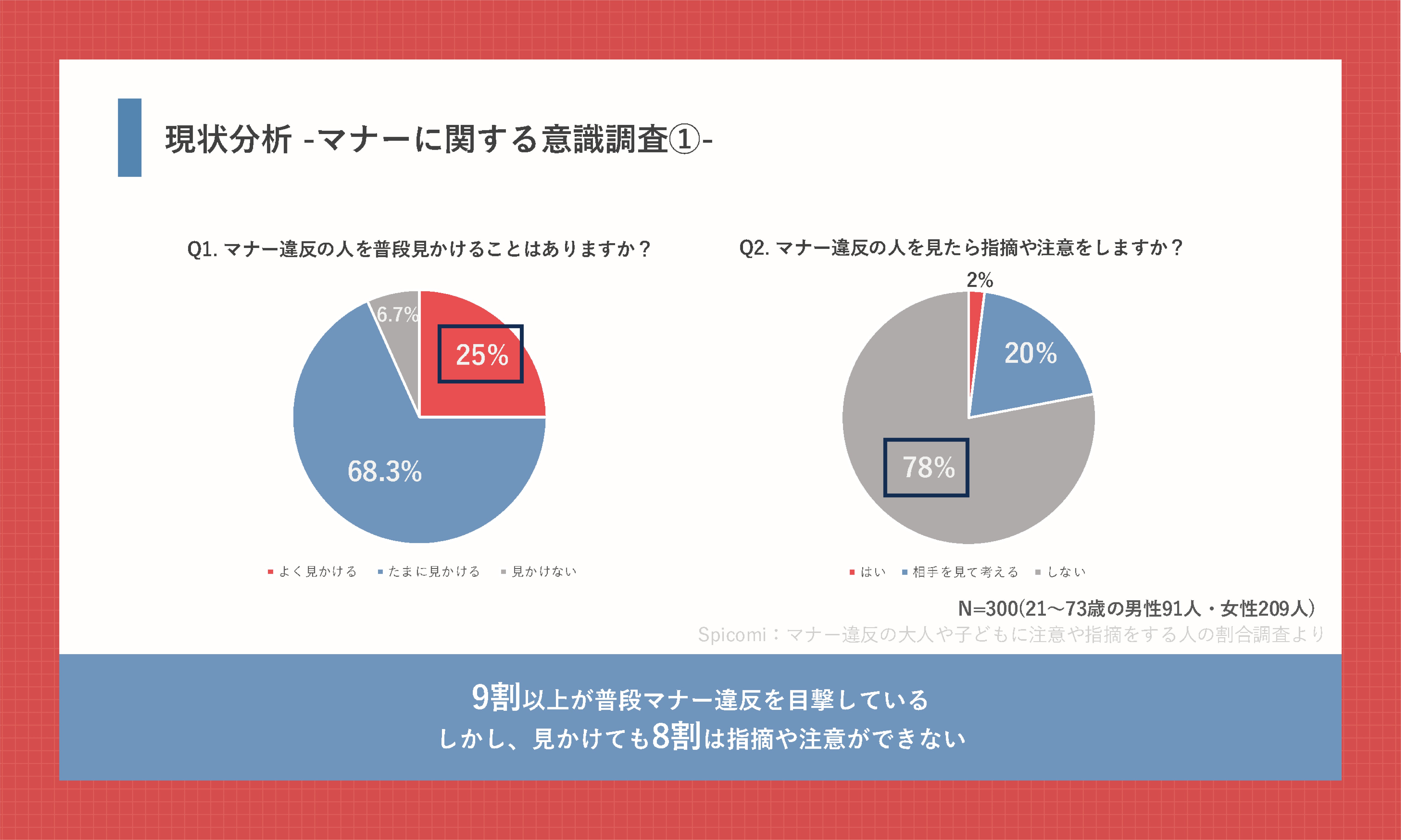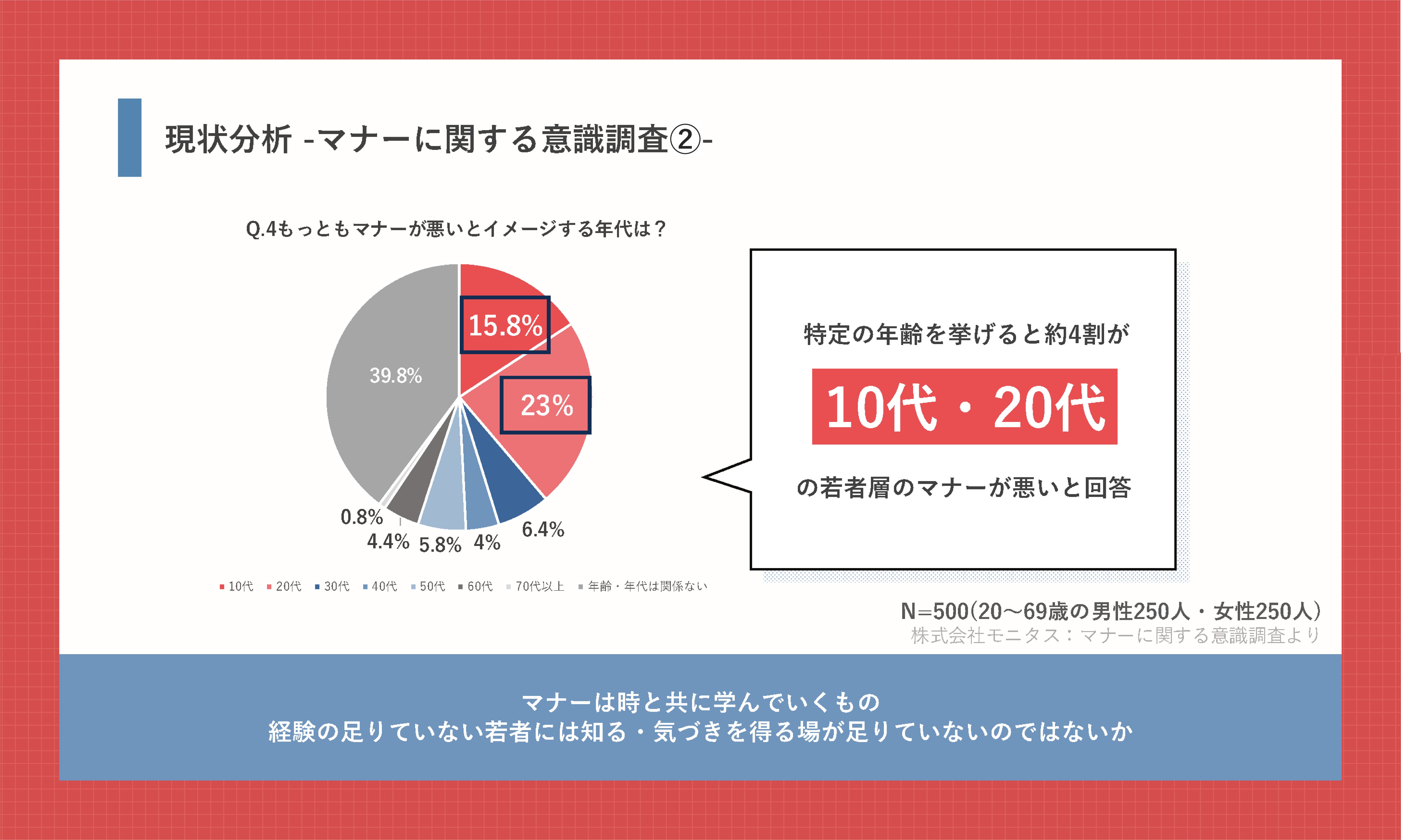 その背景には、マナーを学ぶ/気づく機会がないことがあると考えています。