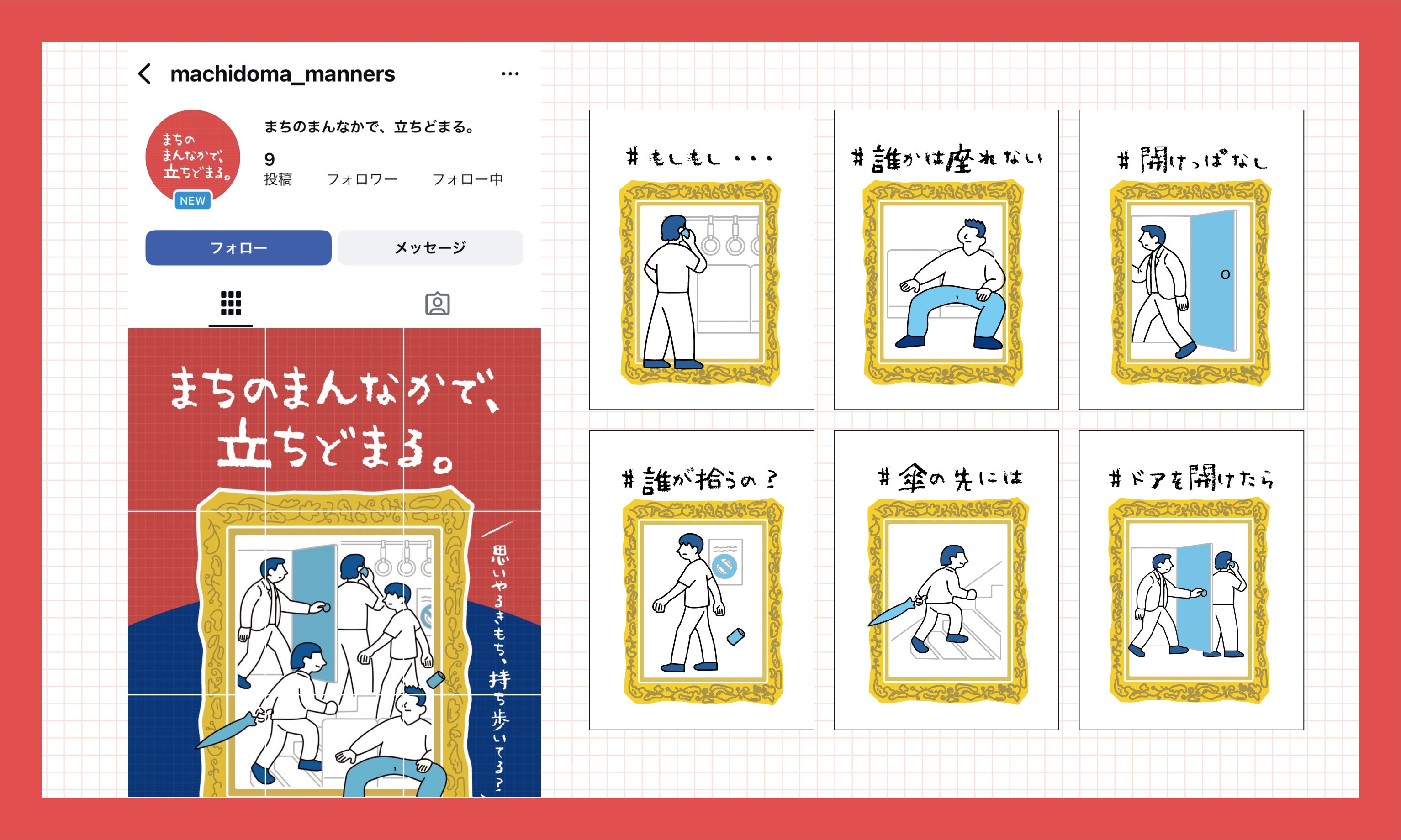駅広告からSNS(@machidomanners) へとつなぐ導線を設計します。