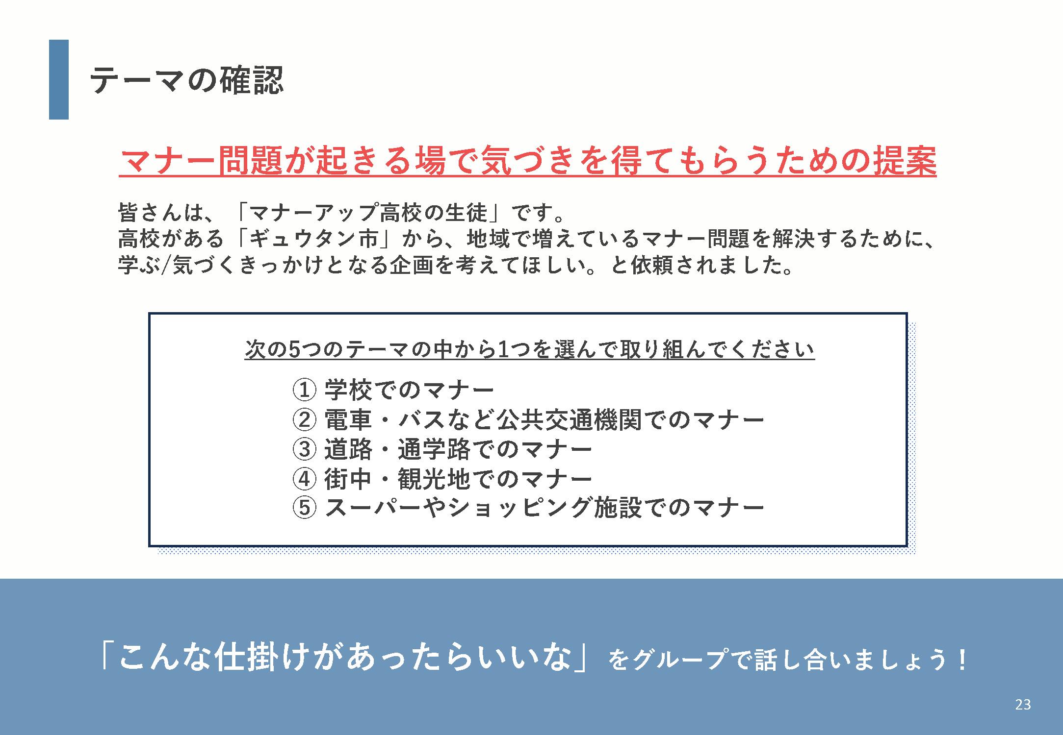 高校生99名に対し「ちょっと気になるマナー」をテーマにしたワークショップを実施しました。