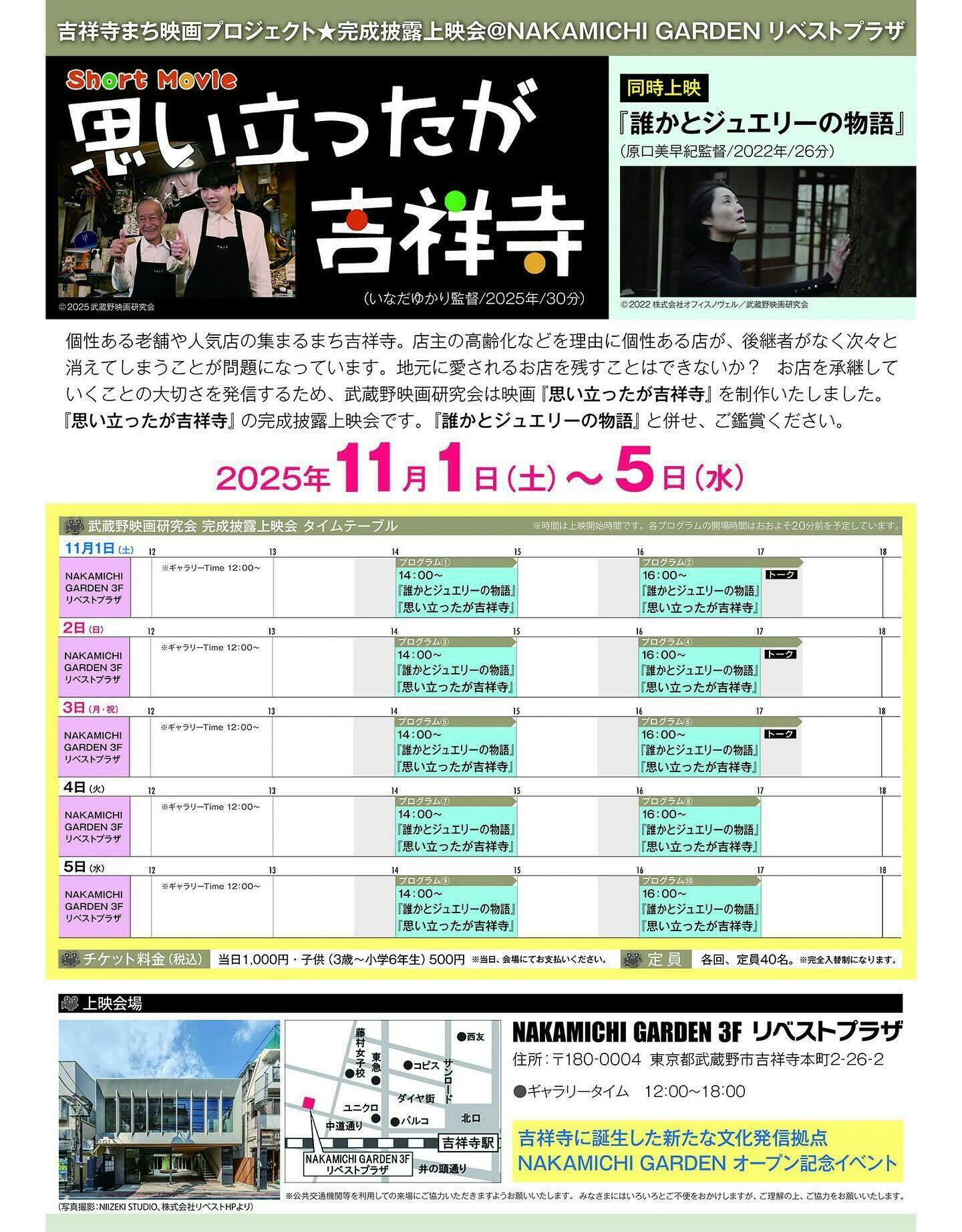 【2025年11/1~5】いよいよ明日から!『思い立ったが吉祥寺』上映会です【吉祥寺NAKAMICHI GARDEN】