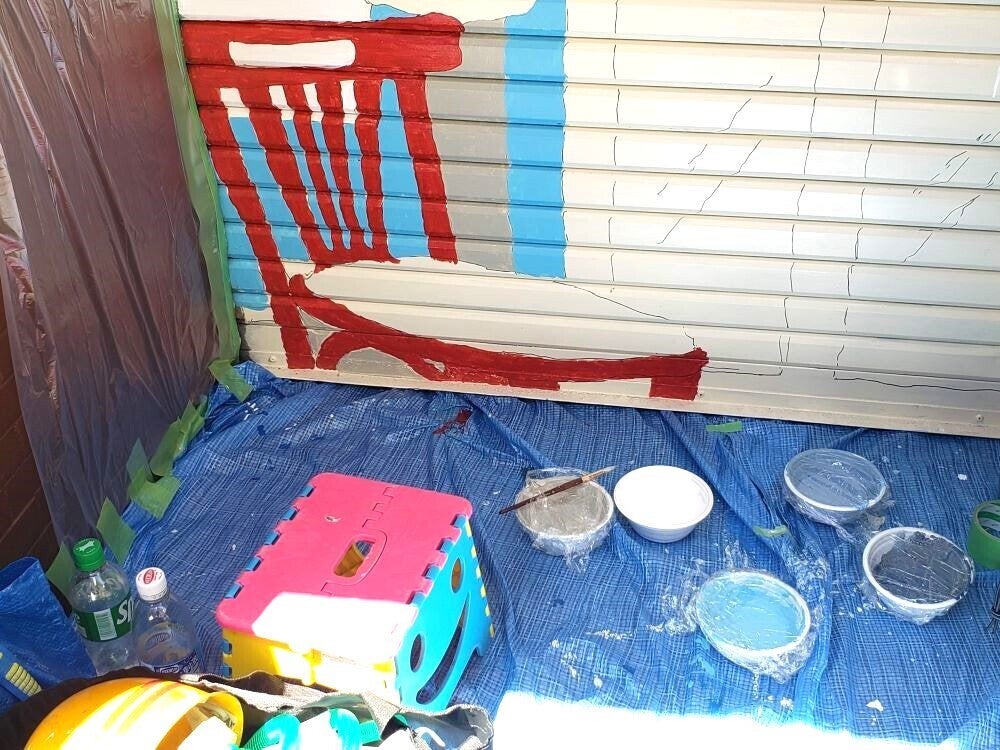 清掃、下絵が終わり、ただいま絶賛色塗り中。