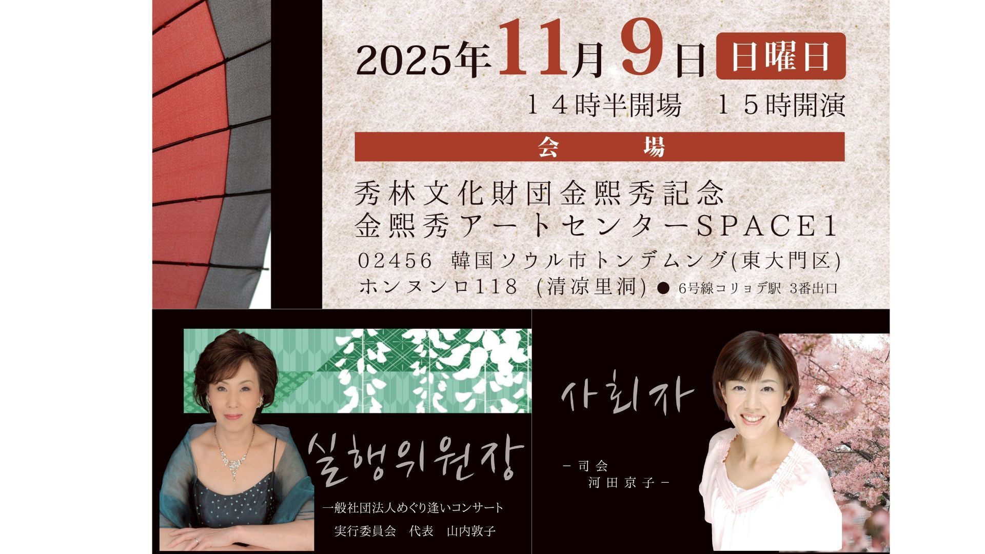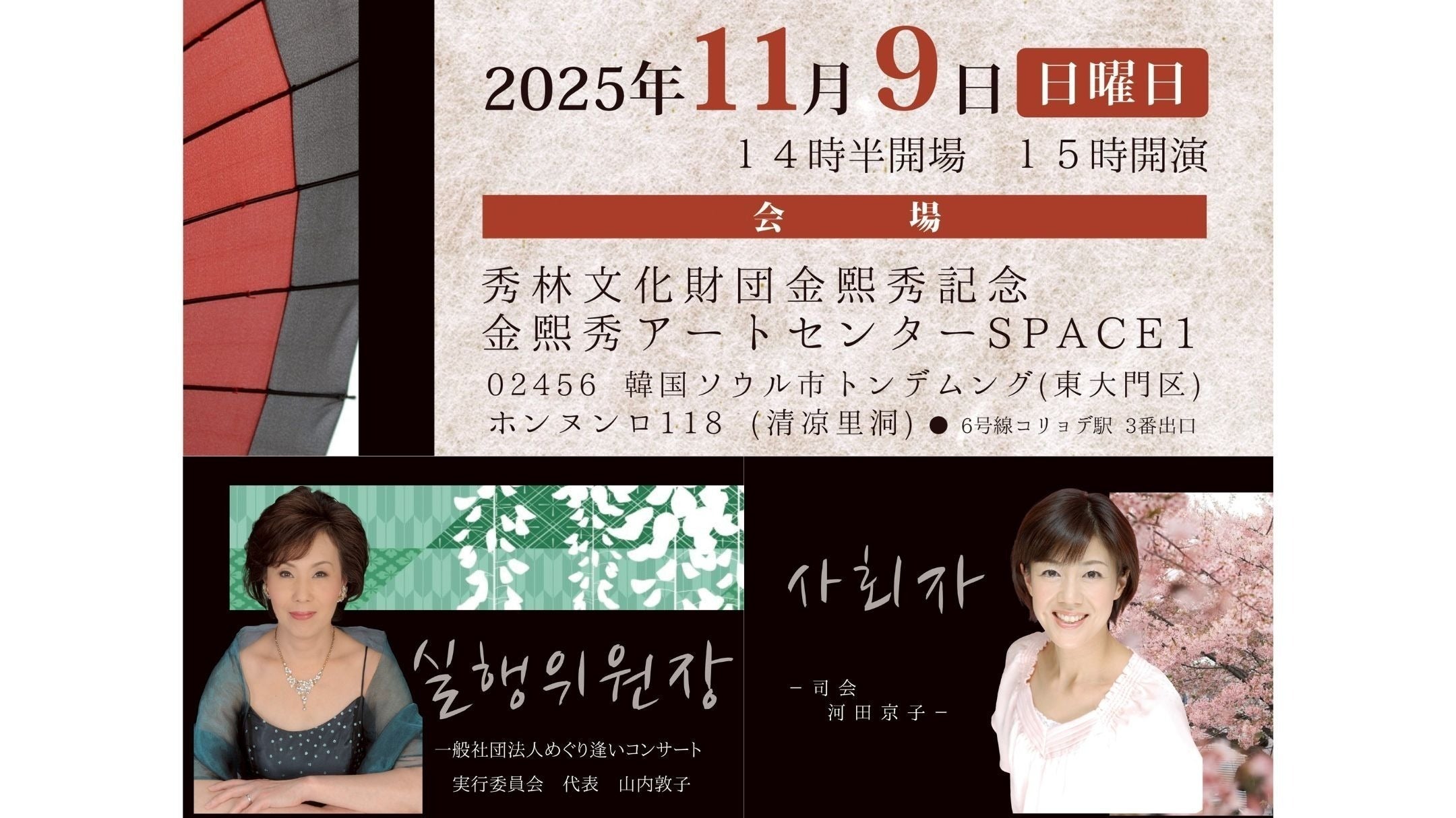 『めぐり逢いコンサートvol.9ソウル公演』を【2025年11月9日(日)韓国ソウル秀林文化財団金ヒスアートセンター スペース1】で実施します。