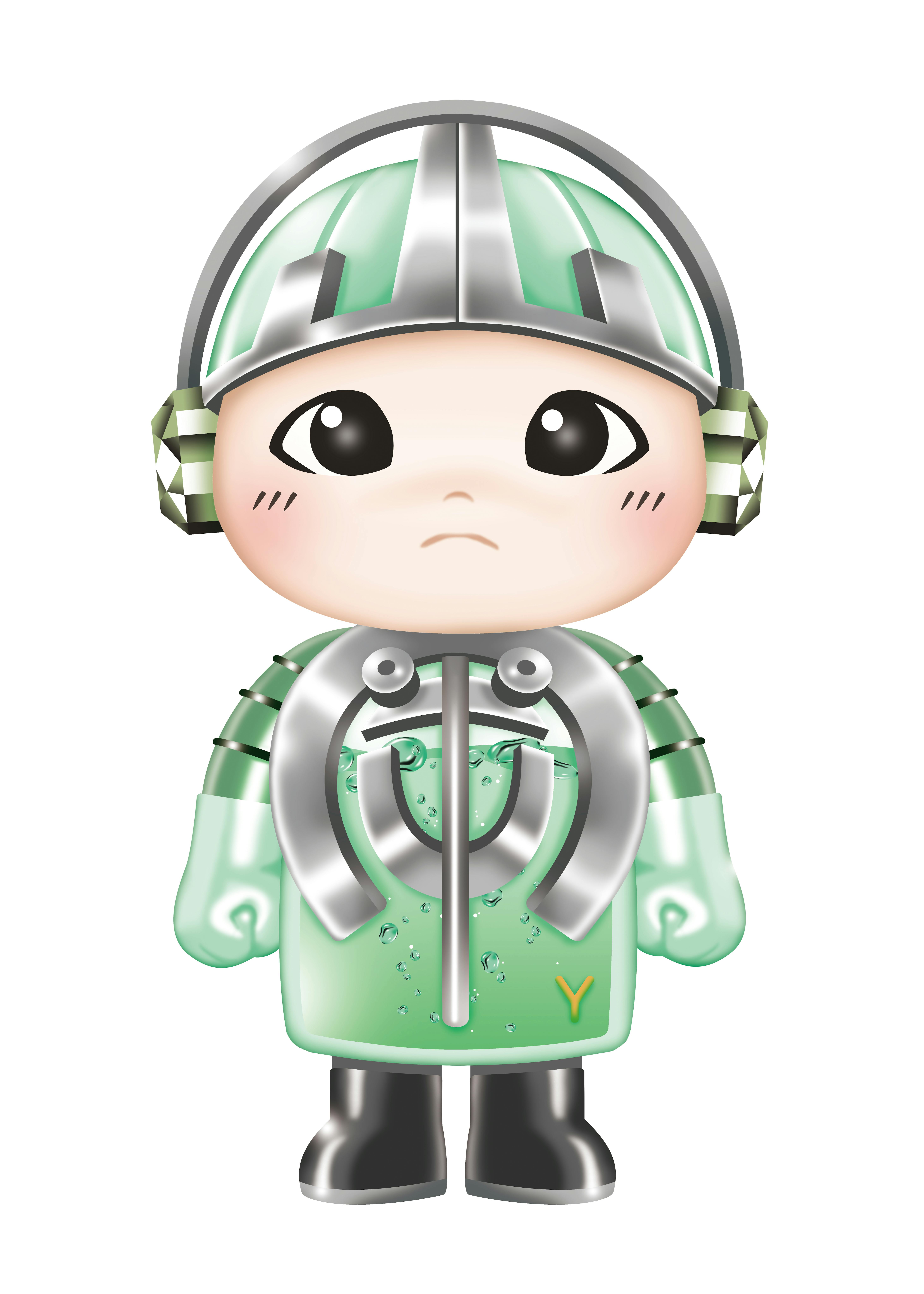 金属のボディを持ちながらも、胸の中には**“自然と人の力をつなぐ”メロンジュース**が輝いています。