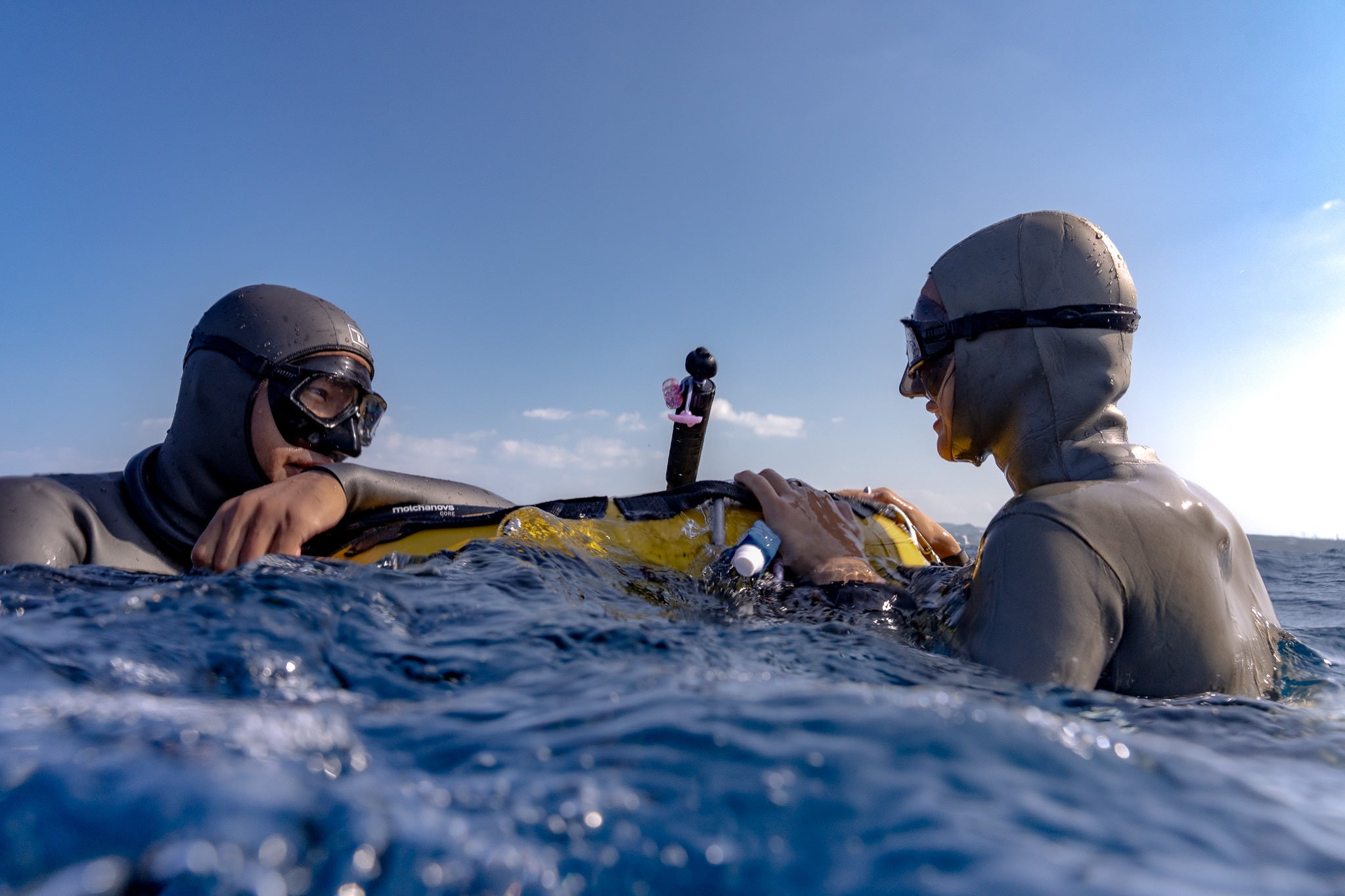 練習ではお互いをサポートし合うバディーと潜り、大会では己を限界を出し切れるようセーフティーフリーダイバーが浮上の際に共に潜り、ライバルでありながら常にお互いを助け合うスポーツです。