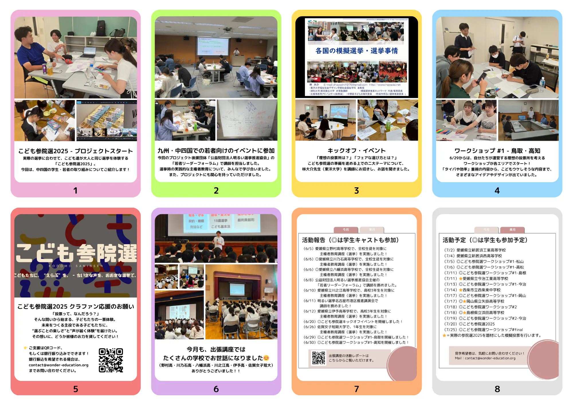 今号では、7月20日投開票の参議院議員通常選挙にあわせて開催している、模擬投票イベント「こども参院選2025」を特集しています。