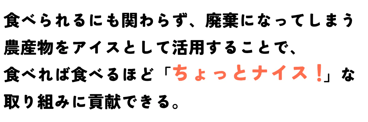 n!ce cream(ナイスクリーム)とは、コンセプトに「もったいないを減らし、おいしいを増やす」を掲げた、ちょっとナイス!なアイスクリーム。