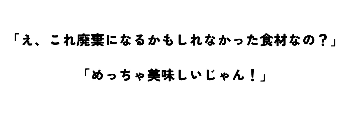 これらを少しでも多く活用し、廃棄を減らして一人でも多くの方に「おいしい!」を届けたい!