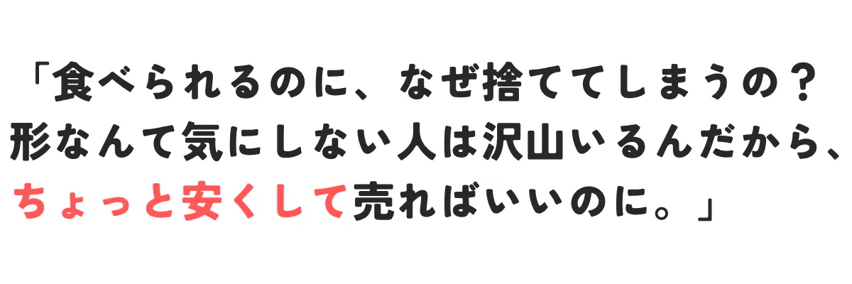 より多くの廃棄されそうな農産物を救い、農家さんにきちんと利益を還元し、環境負荷の削減につなげていくためには、きちんと「売上」というエンジンが必要です。