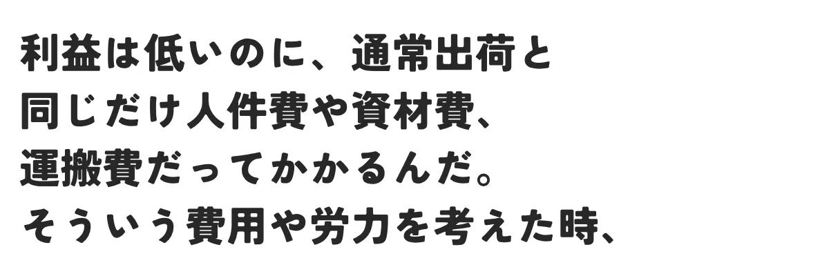 しかし、現状の製造や流通体制では、正直
