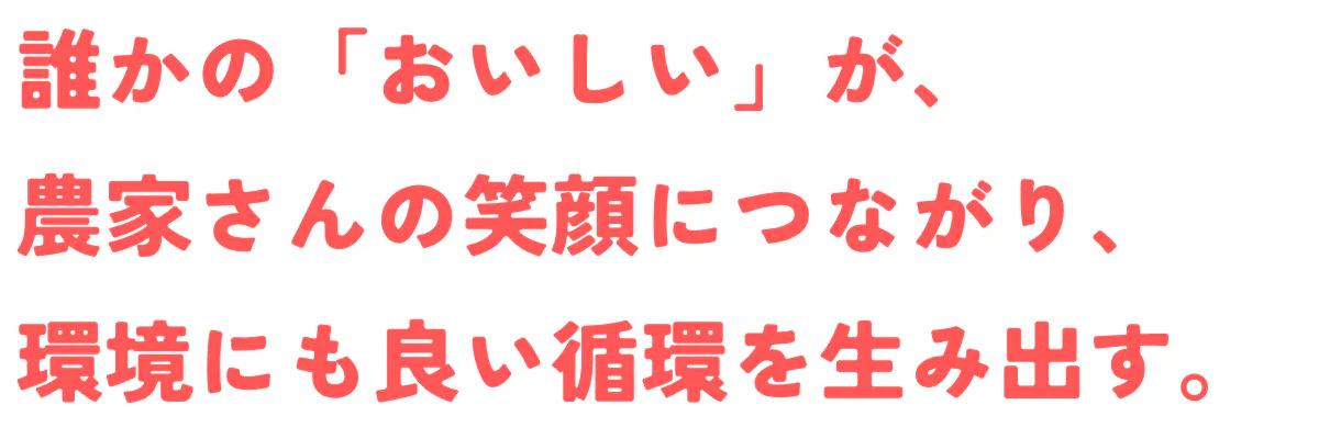 みんなが食べてくれるからこそ、救われる食材があって、農家さんがいて、地球環境への負担削減も広がっていく。
