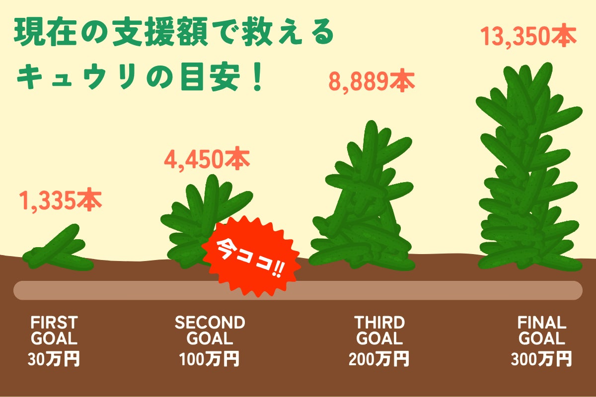 300万円を達成すると、きゅうり13,350本分をレスキューできるとのことです。