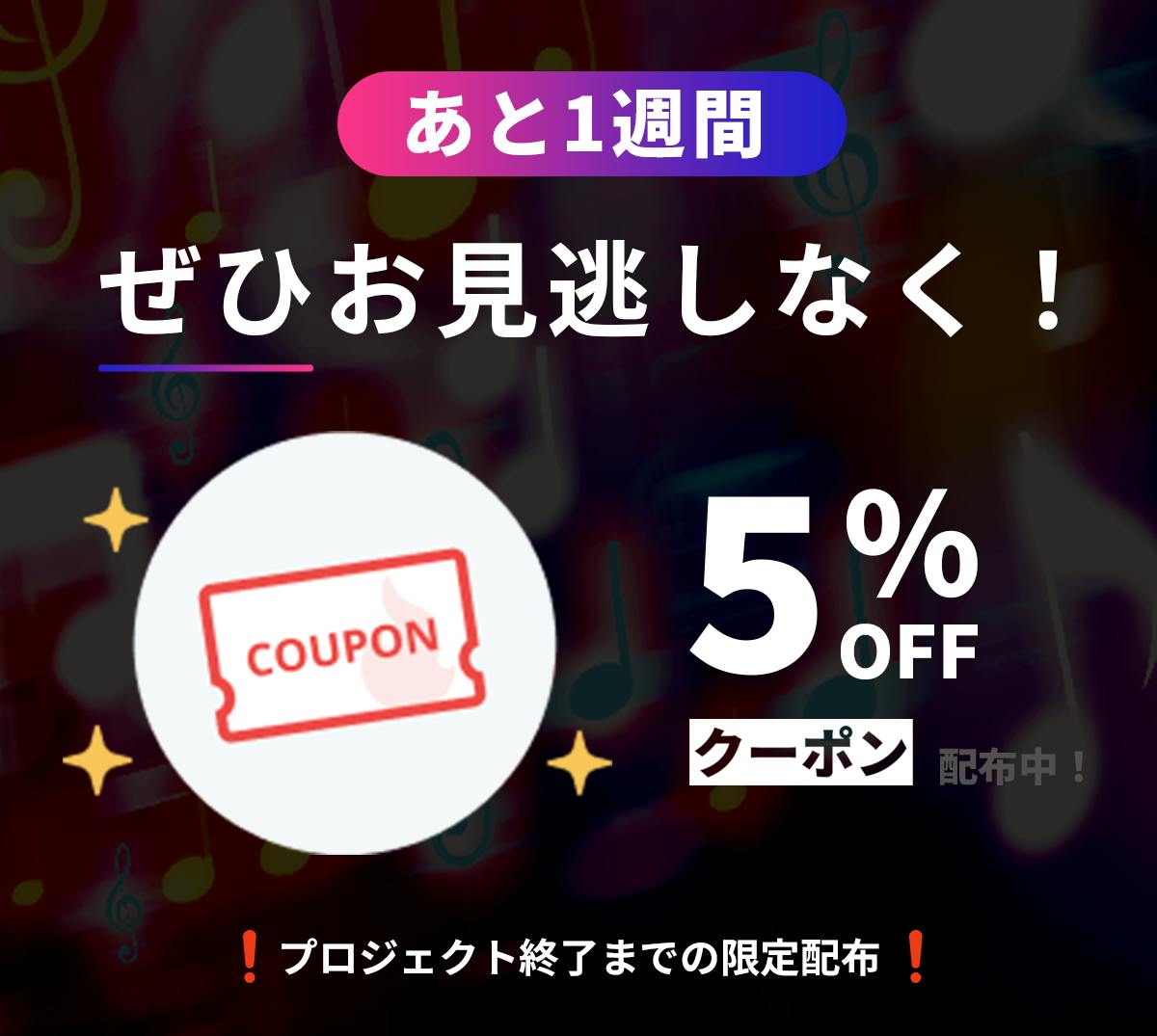 このクーポンは、プロジェクト終了までの限定配布です。