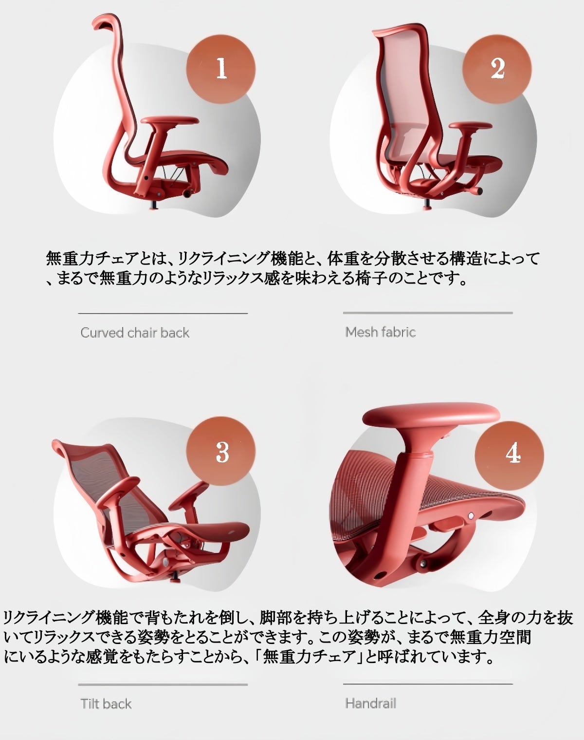 3、無重力チェアの作りこみ(座るだけで美しい姿勢へ)