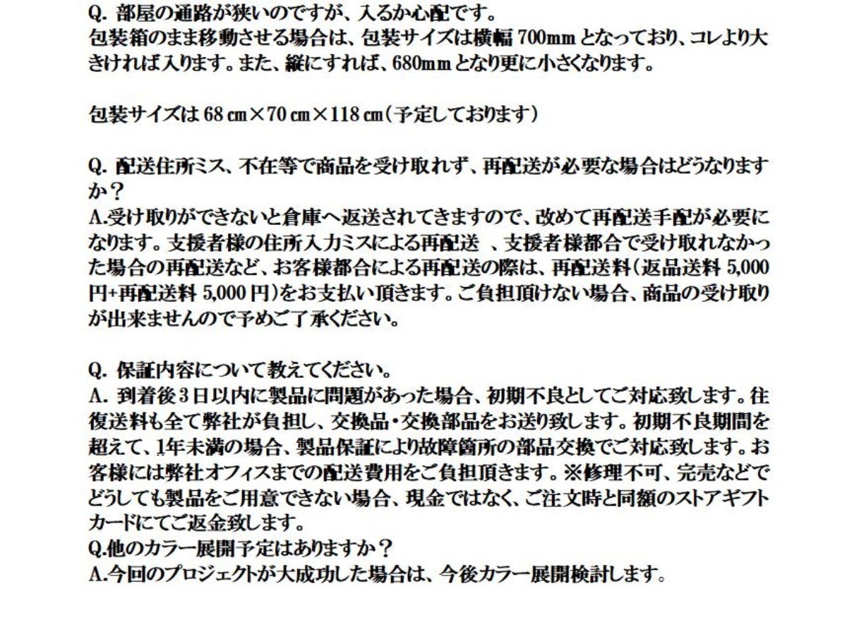 ※開発中の製品につきましては、デザイン・仕様の一部が変更となる可能性がございます。 ※本文中に記載させていただいたスケジュールは、あくまでプロジェクト公開時点の予定です。ご支援の性質上、配送遅延のおそれがございます。原則として、配送遅延に伴うご支援のキャンセルはできませんが、リターン配送予定月から3ヶ月を超えた場合には、希望者に限りキャンセルにて対応させていただきます。