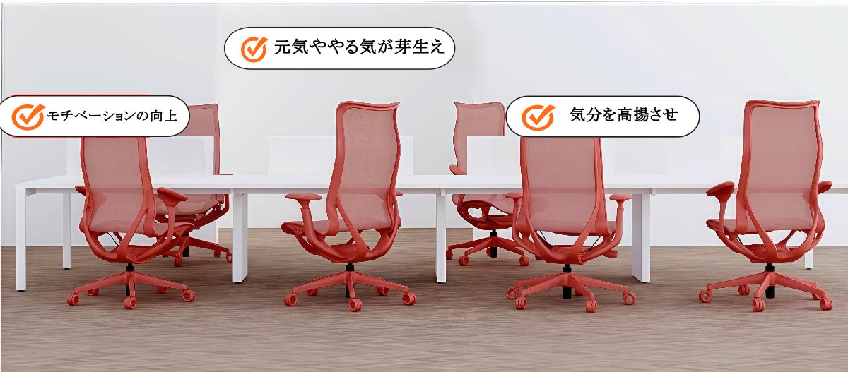 法人のお客様は、会議室にレッドを取り込むことで、社員の皆様のモチベーションの向上や、元気ややる気が芽生えたり、気分を高揚させたりするなどの効果も期待できます。