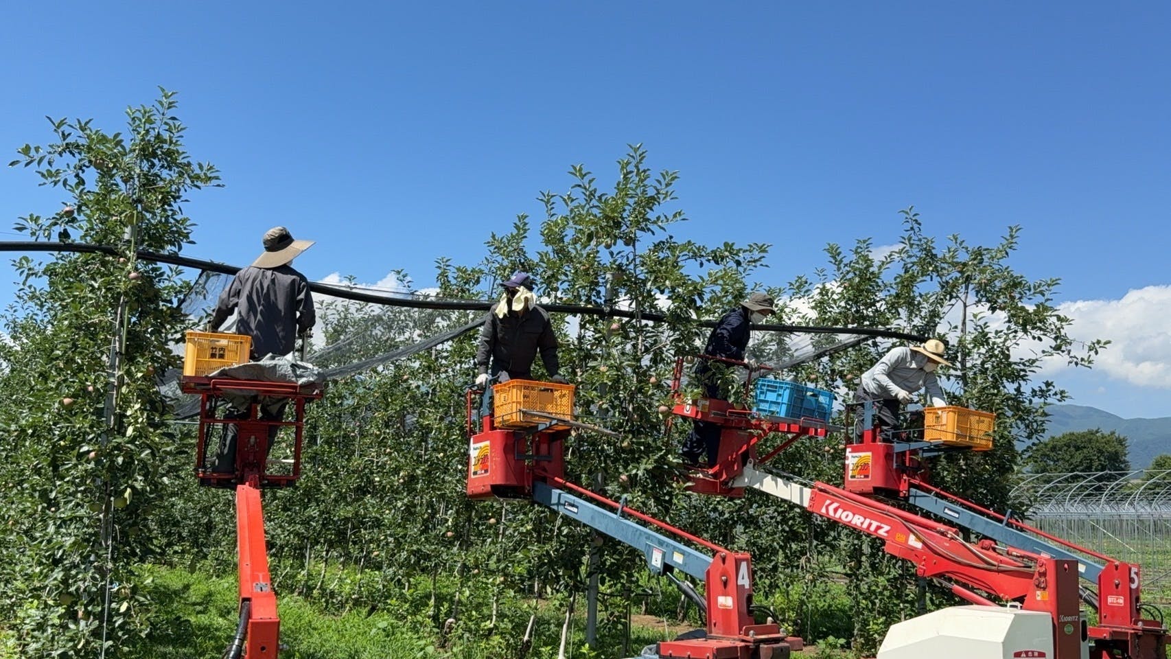 当農園では、少しでも被害を減らすために、日除けネットを張りました。