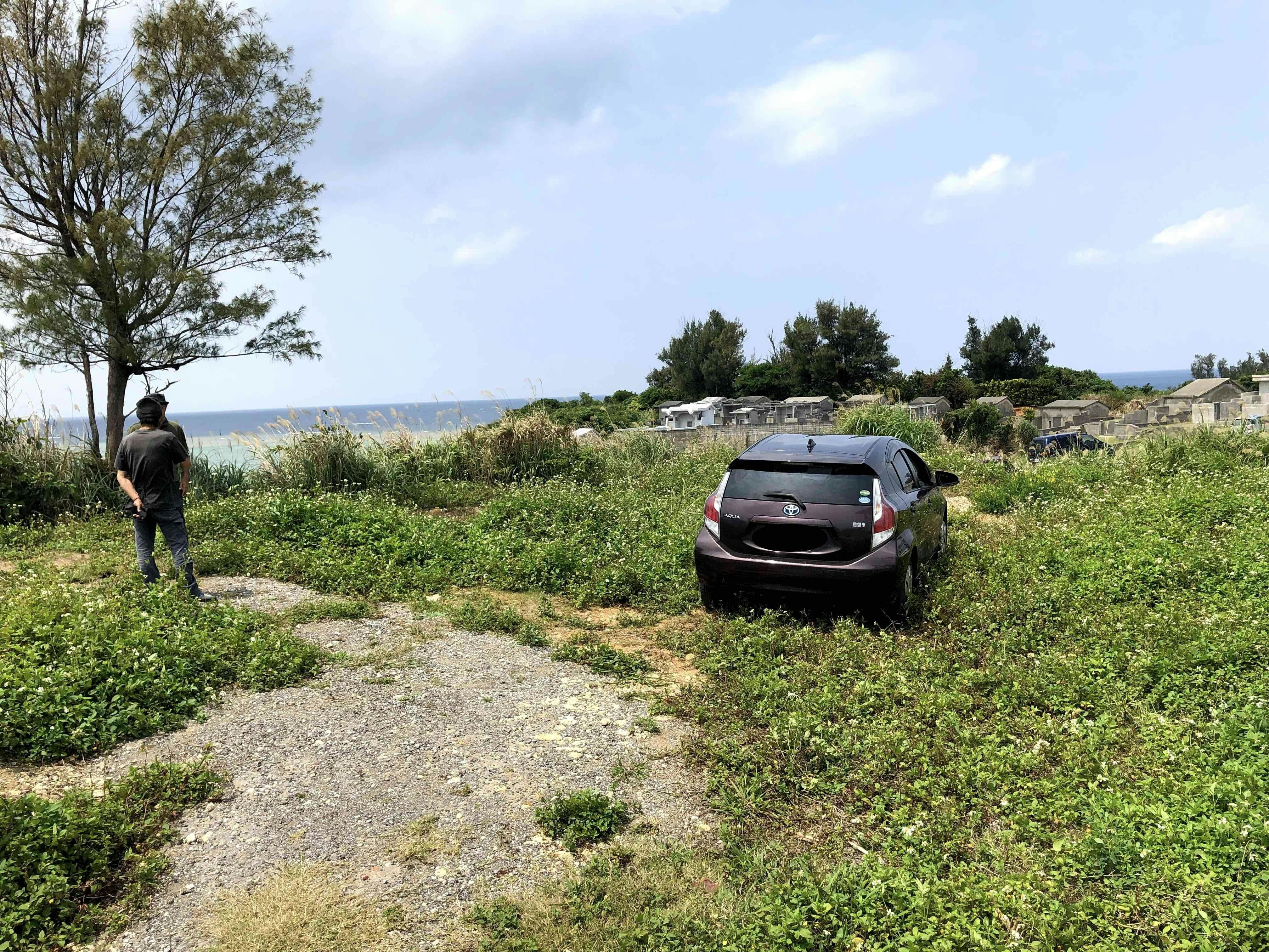 その土地は小さな高台になった地形の先端で、そこからの眺めは海とご先祖さまのお墓、そして海岸線の先の残波岬。空が広く一望でき、海から岬にかけては夕陽が沈みます。