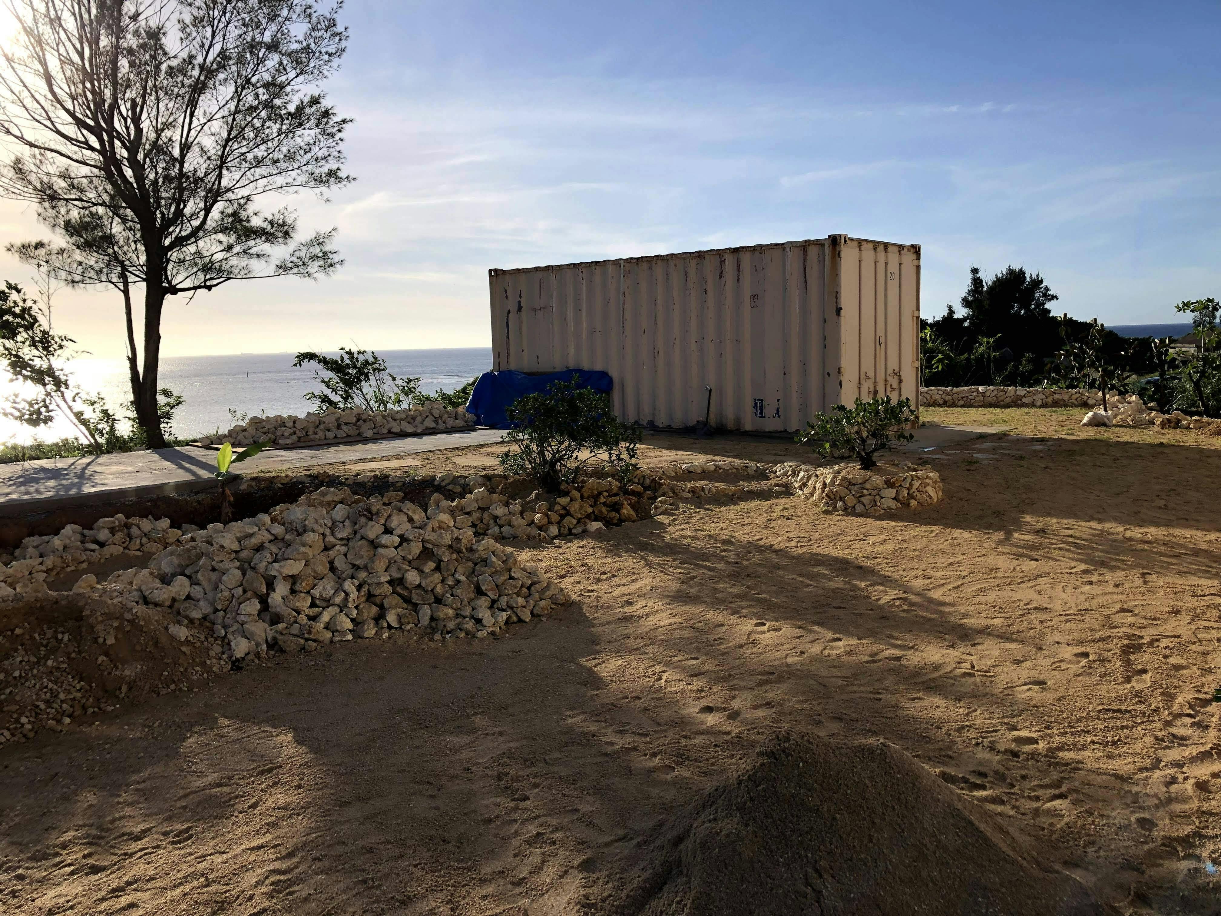 セメントで固めるのではなく、昔ながらの石積みで植栽エリアや周りとの境界線を隔てていきました。石積みで使うのは、琉球石灰岩。