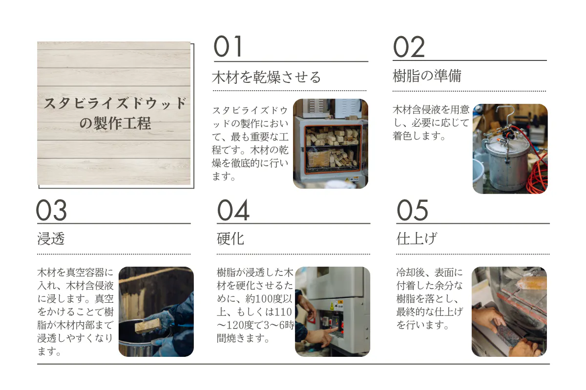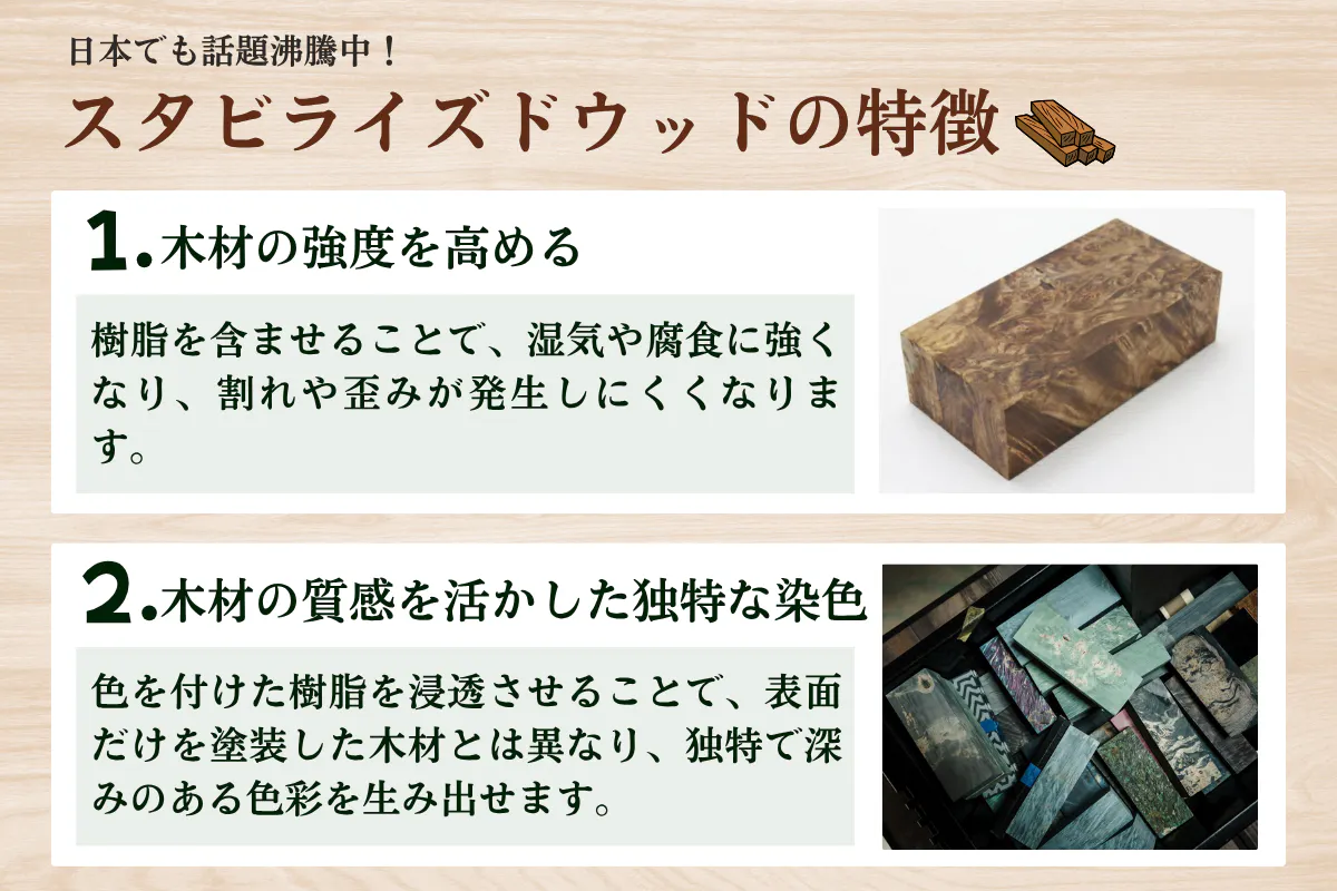 近年、日本でも徐々に注目を集めている素材「スタビライズドウッド」。
