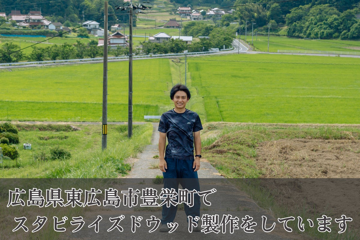 現在、広島県東広島市豊栄町にて「スタビライズドウッド」を加工した製品の製造販売、スタビライズドウッドの製造販売、製造用液剤の販売を行なっています。