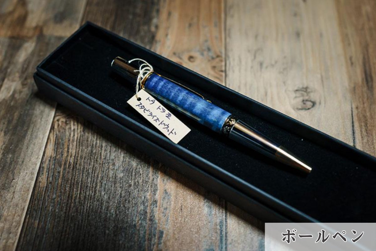 スタビライズドウッドならではの美しい木目が魅力で、使うほどに味わい深くなるボールペンとお礼のメッセージカードをお届けします。