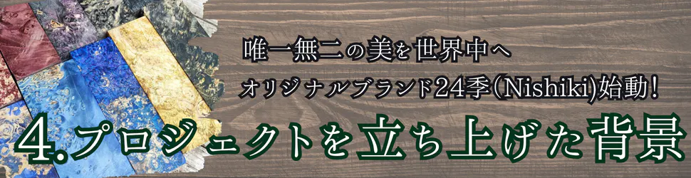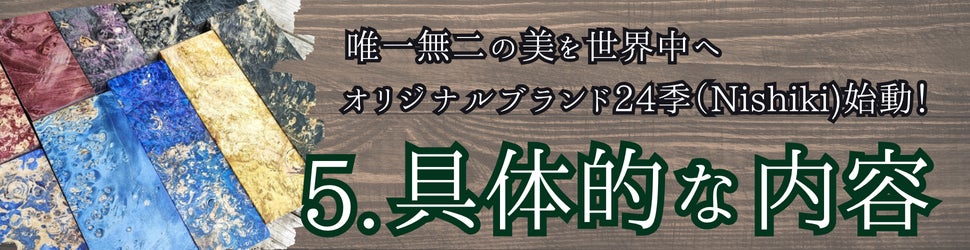 今回のプロジェクトで実現したいのは、スタビライズドウッドの魅力を伝えるオリジナルブランド「24季(Nishiki)」の立ち上げです。