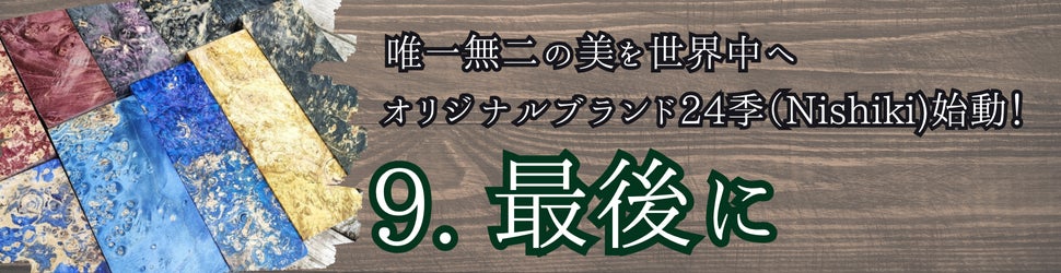 これまで試行錯誤を重ねながら、ようやくスタビライズドウッドの魅力を発信できるオリジナルブランド「24季(Nishiki)を立ち上げる準備が整いました。