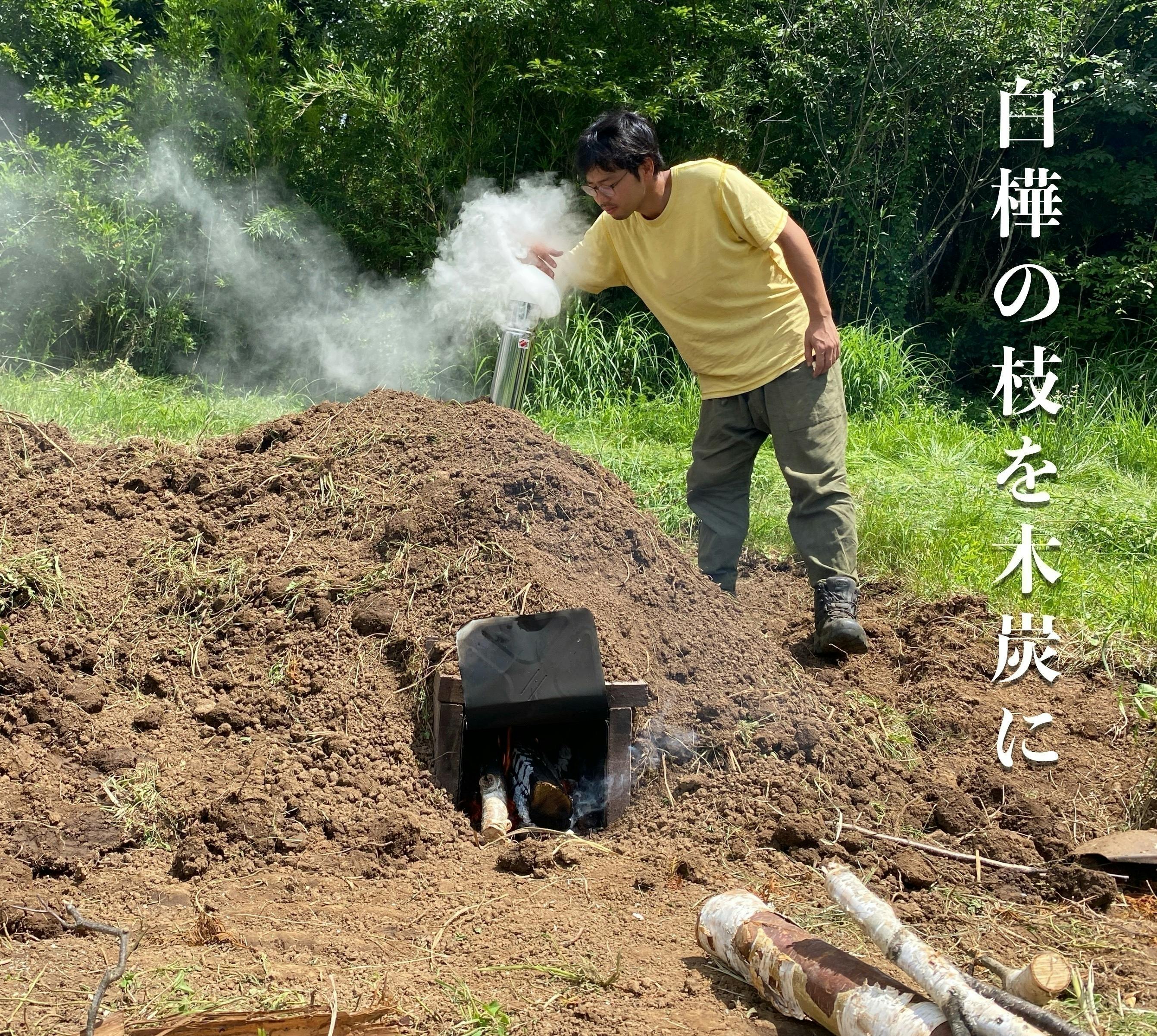 私たちも里山の資源を活かす林業を行う中で、白樺クラフト製作所さんの「守りながら使う」姿勢に共感し、今回のプロジェクトでは白樺炭の製造をお手伝いしています。