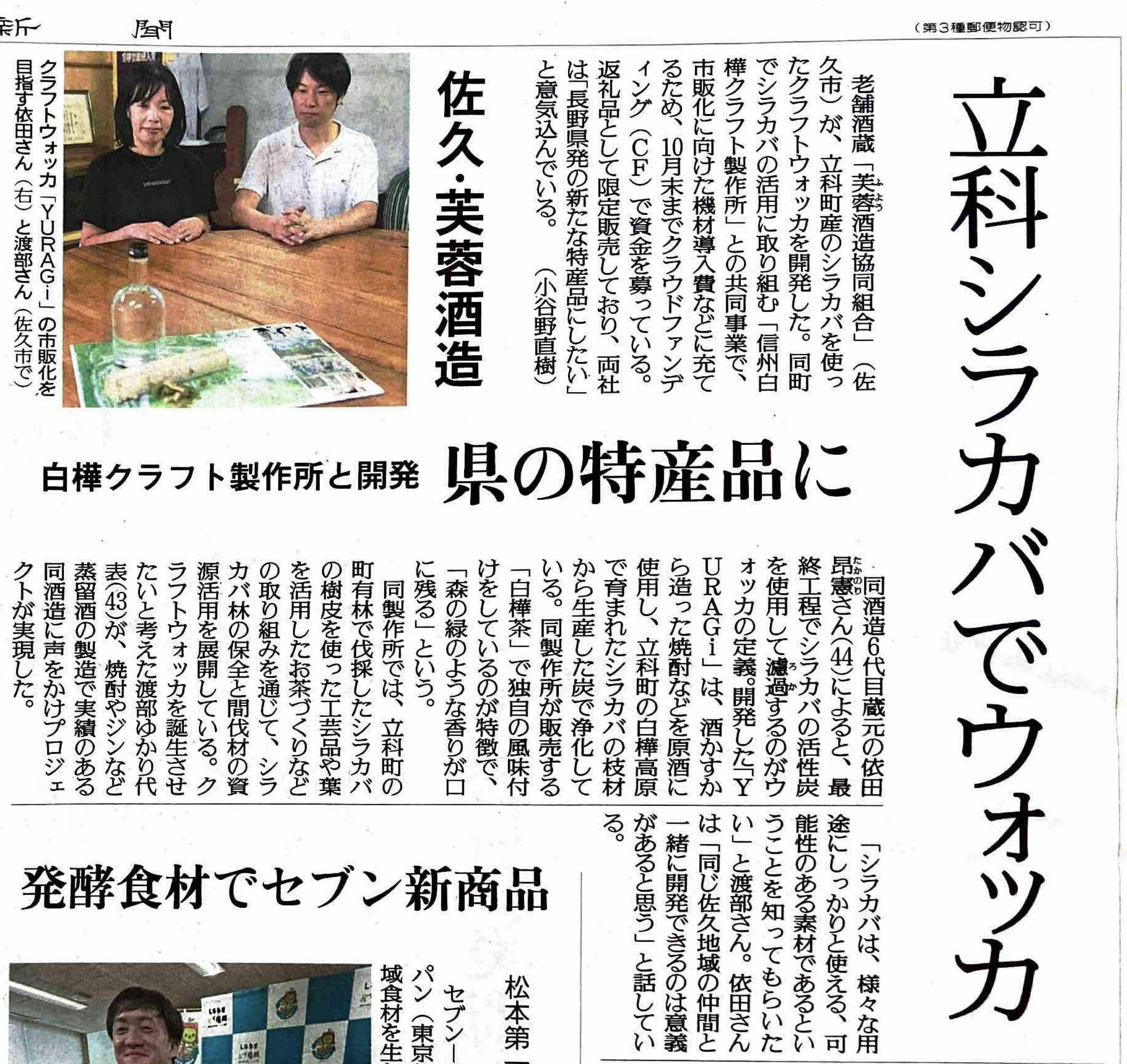 10月10日金曜日の読売新聞朝刊に「信州白樺クラフトウォッカ」の記事が掲載されました。以下の読売新聞ニュースサイトからオンラインでもご覧いただけます。