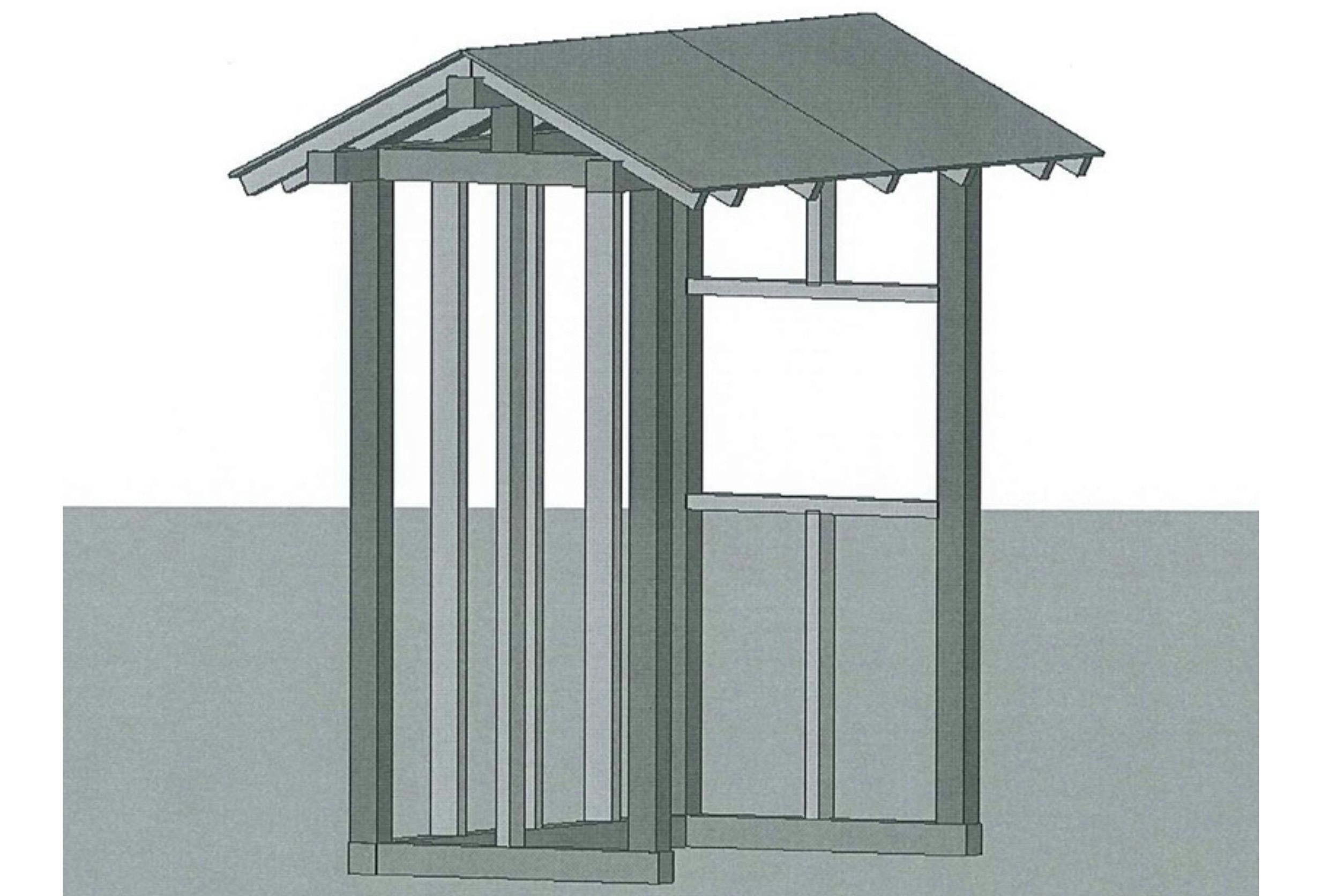 ▲ 国産杉材で開発中の無人販売所キット骨組み(イメージ)