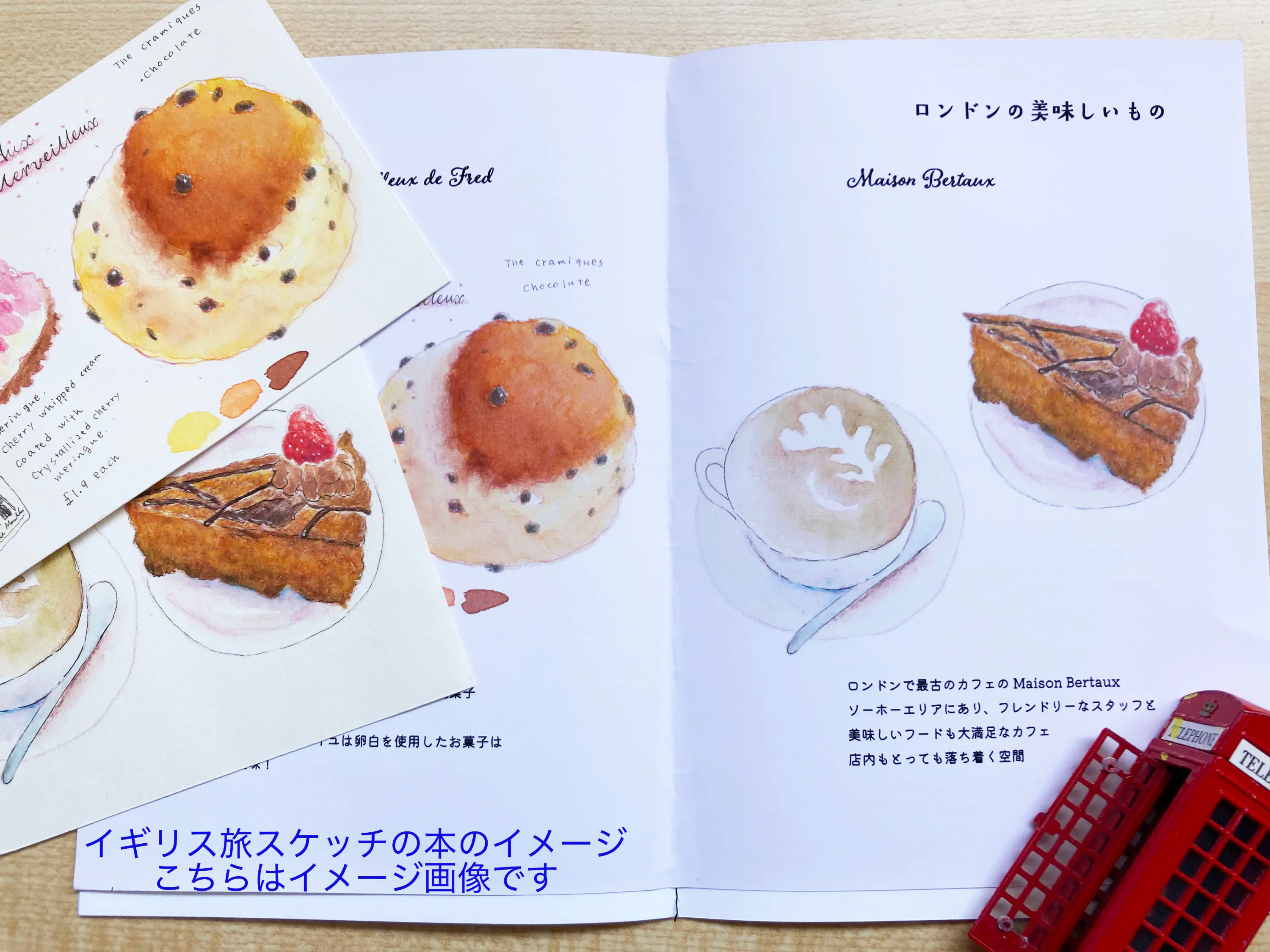 イギリス旅のスケッチ本とオーダー原画(ポストカードサイズ)