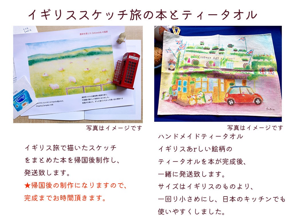 イギリスらしい絵柄のハンドメイドティータオルを本が完成後、一緒に発送させて頂きます。