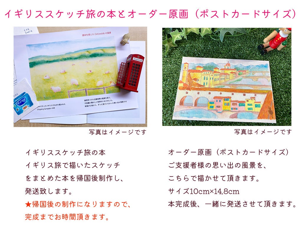 イギリス旅のスケッチ本とオーダー原画(ポストカードサイズ)