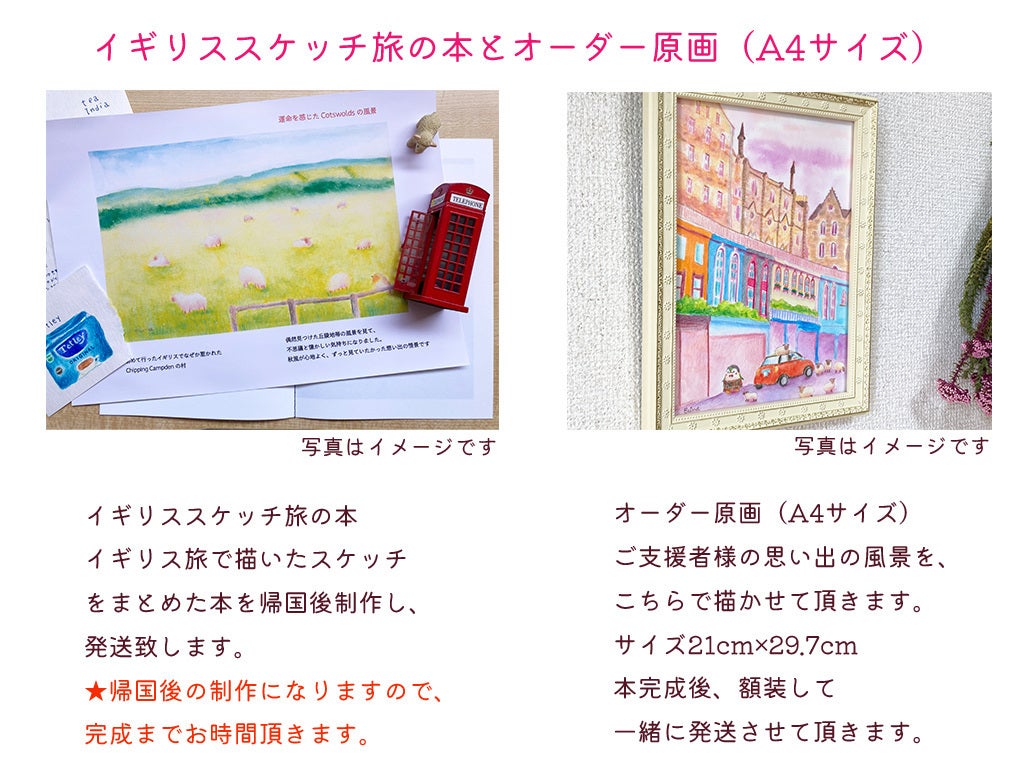 リターン⑤  イギリス旅スケッチの本&オーダー原画(A4サイズ)