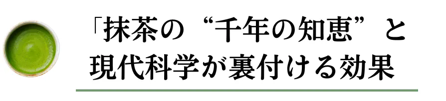 | 【穏やかフォーカス】 | 禅僧が座禅前に飲んだ抹茶。心を静め、集中力を高める飲み物として愛されてきた歴史が、現代を生きるあなたの午後を支えます。 |