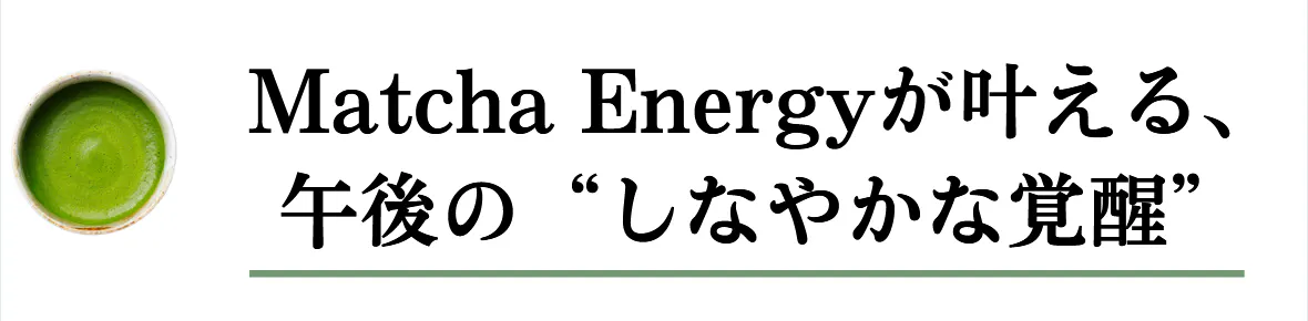 「Matcha Energy」がもたらすクリアな感覚と集中力は、仕事だけでなく、日々の生活にも良いリズムを生み出し、充実感に繋がります。
