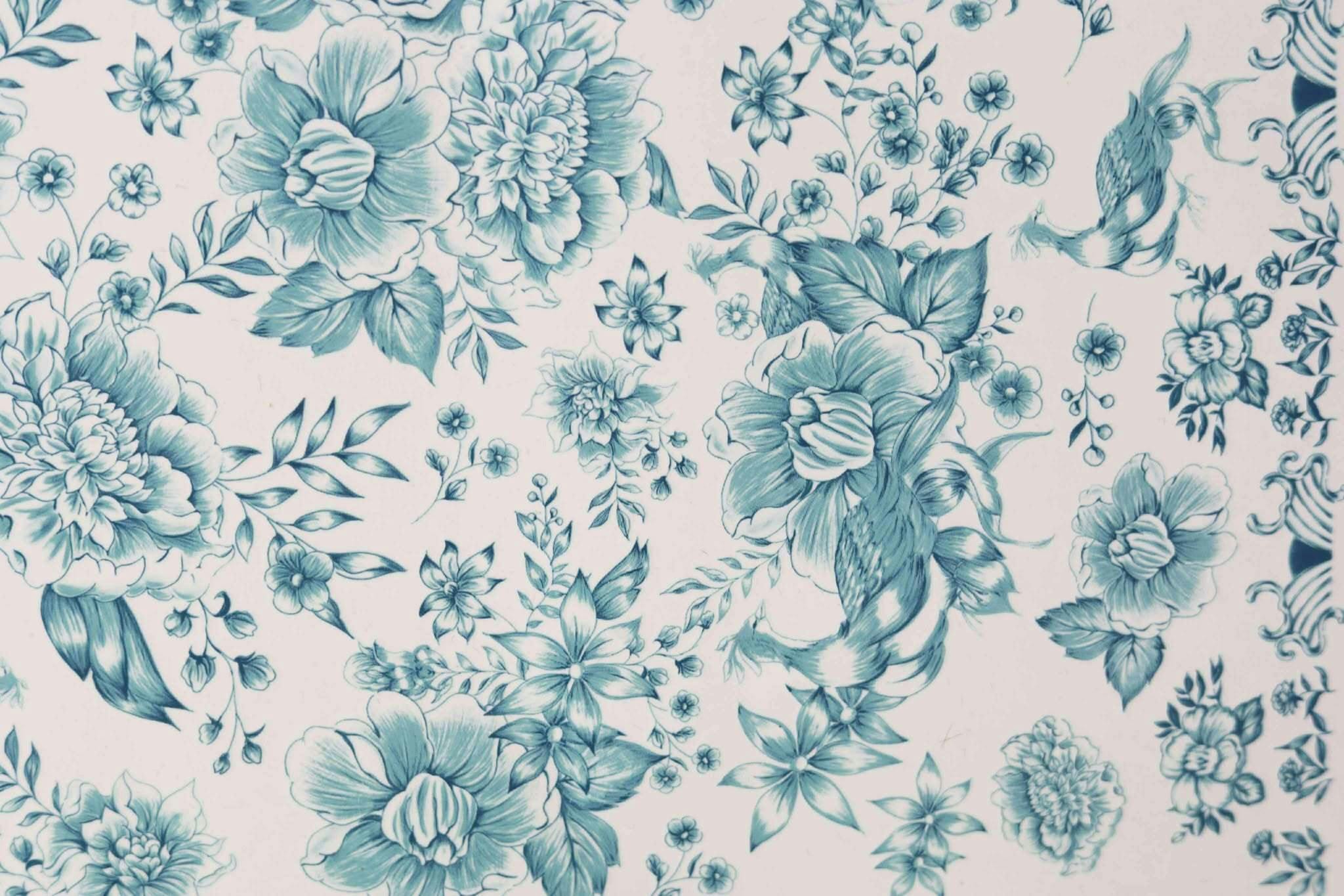A:シャビーシックフラワー草花やキジなどが繊細なタッチで描かれた、涼しげで落ち着いた印象のヴィンテージ風デザイン。大人の雰囲気漂うブルーグリーンの色合いが、抹茶の時間を上質に彩ります。