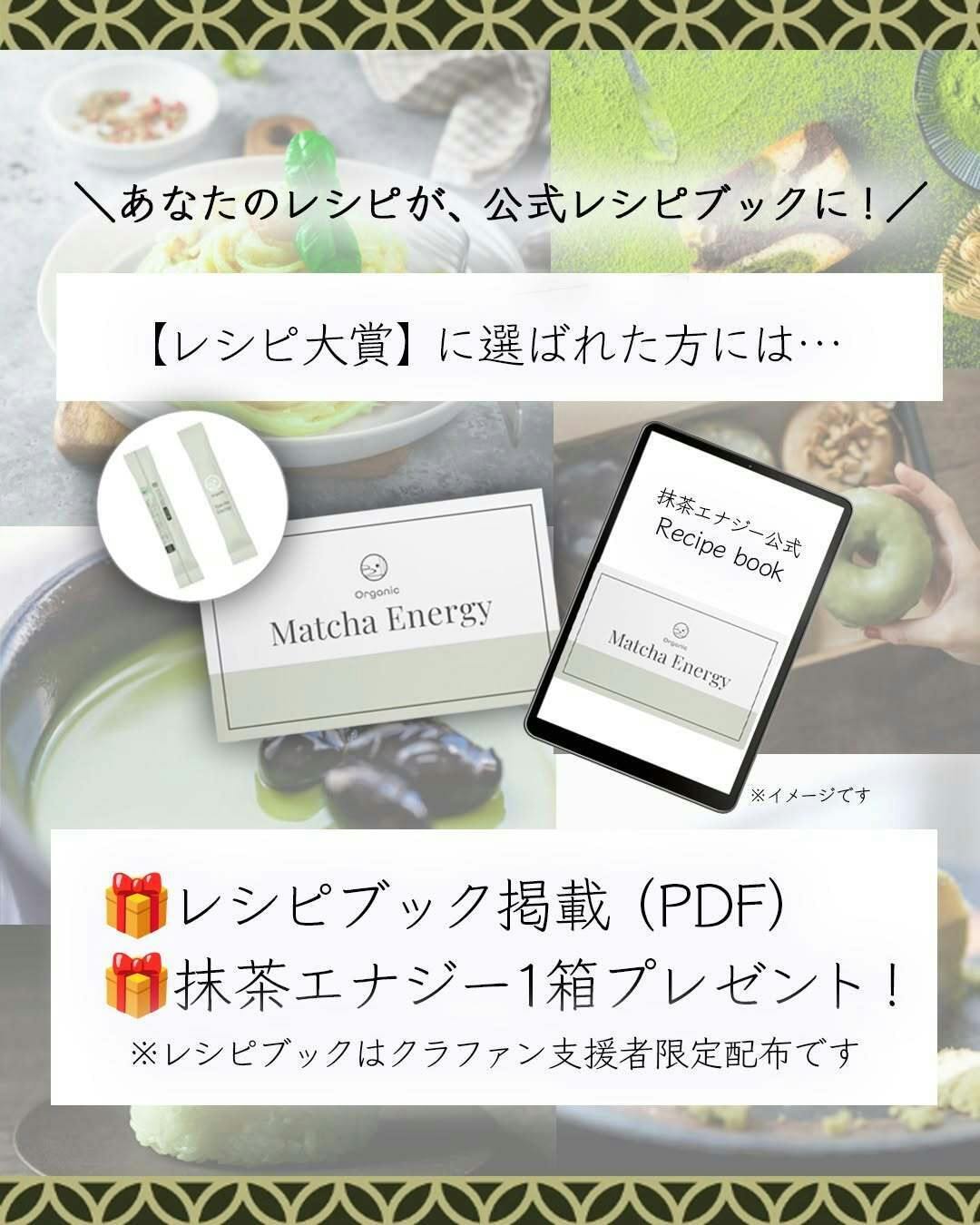 公式レシピブック(PDF)に掲載され、さらに「Matcha Energy」を1箱プレゼントいたします!