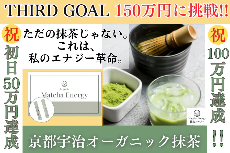 この勢いをさらに加速させ、より多くの方に「Matcha Energy」と抹茶文化の魅力をお届けするため、サードゴールとして150万円を目指すことにいたしました。