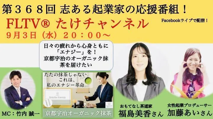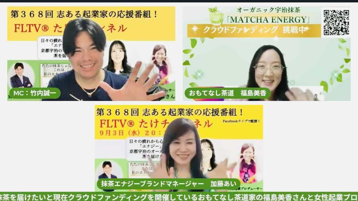 この度、大変光栄なことに、おもてなし茶道家の福島美香が志ある起業家の応援番組「たけチャンネル」にゲストとして出演させていただきました!