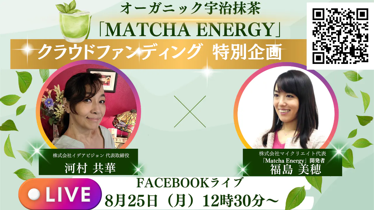 「午後のもうひと頑張り」を応援する「抹茶エナジータイム」、今回は陰陽五行道R講師・算命学鑑定師・講師で株式会社イデアビジョン 代表取締役である河村共華さんをお迎えしました!「占い師」ではなく「鑑定士」と名乗る河村共華さんが語る、宿命・才能・バイオリズムの活かし方。自分や大切な人の「支質」を知ることで、人間関係や仕事が劇的に変わるヒントが満載です。   <この動画でわかること>「算命学」とは? 占いとの違いとは?「資質」を知ると、なぜ人間関係がうまくいくのか?(驚きの例え話も!)人生の波に乗るための「バイオリズム」と「テーマ」の活用法午後の集中力・パフォーマンスを上げるための共華さん流「リフレッシュ術」新感覚オーガニック抹茶ドリンク「Matcha Energy」開発秘話&こだわりのポイント「Matcha Energy」を使った特別なイベント情報(銀座SIX)【河村共華さんプロフィール】陰陽五行道R講師・算命学鑑定師・講師で株式会社イデアビジョン 代表取締役。女優、銀座クラブママ、会社経営などを経て運命学と出会い、算命学をはじめとするさまざまな占術を学ばれました。現在は吉祥寺で占術サロン・ジュピターを主宰されていて、なんと1万人以上の鑑定実績をお持ちの方!個々の宿命を完全燃焼させることが、この世でのミッション・天命とし、本当の自分を確立し魂を満たすための鑑定は20代~70代まで幅広い年齢層に支持されリピーターや紹介が後を絶ちません^^現在、お客さまの95%が紹介とリピーターで成り立っているとのこと!また、組織鑑定と組合わせ、人材育成・人材活用・人間関係の相談は経営者層に好評を博しています。【Matcha Energyについて】「午後のもうひと頑張り」を応援する、京都宇治抹茶を使用したオーガニック抹茶ドリンク。コーヒーに比べて緩やかに効果が持続し、心身ともにリフレッシュできるのが特徴。現在、クラウドファンディング実施中!NEXTゴール100万円を目指して挑戦中です。[クラウドファンディングページへのリンクはこちら]https://camp-fire.jp/projects/862023/view?utm_campaign=cp_po_share_c_msg_mypage_projects_show【イベント情報】10月19日&31日開催!銀座SIXにて、茶室での茶道体験&Matcha Energy&ランチコースがセットになった特別イベント。最大1000円OFFクーポンも配布中![イベント詳細・お申し込みはこちら] https://camp-fire.jp/projects/862023/view?utm_campaign=cp_po_share_c_msg_mypage_projects_show皆様の温かいご支援が、私たちの未来を、そして「Matcha Energy」が広がる可能性を大きく広げます。ぜひ、この挑戦を応援していただけると嬉しいです。