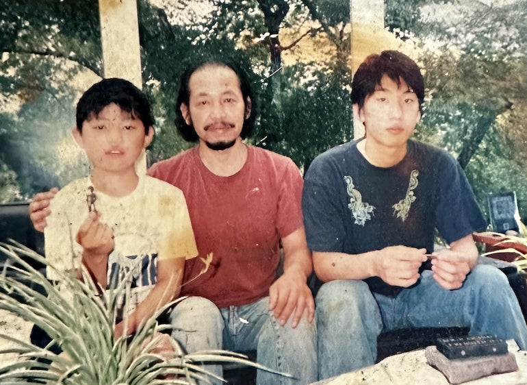 昨年、スペインで再会したアーティスト、オム・バルバラ。彼は、ピカソやミロ、そして父・落合皎児も創作の場としていたバルセロナの版画工房「スタジオ46」の創設者、ジョアン・バルバラの孫ですが、出会いは私が生後数ヶ月の頃に遡り、私の「ギフレ」という名前をつけたのも彼の祖父ジョアン・バルバラです。
