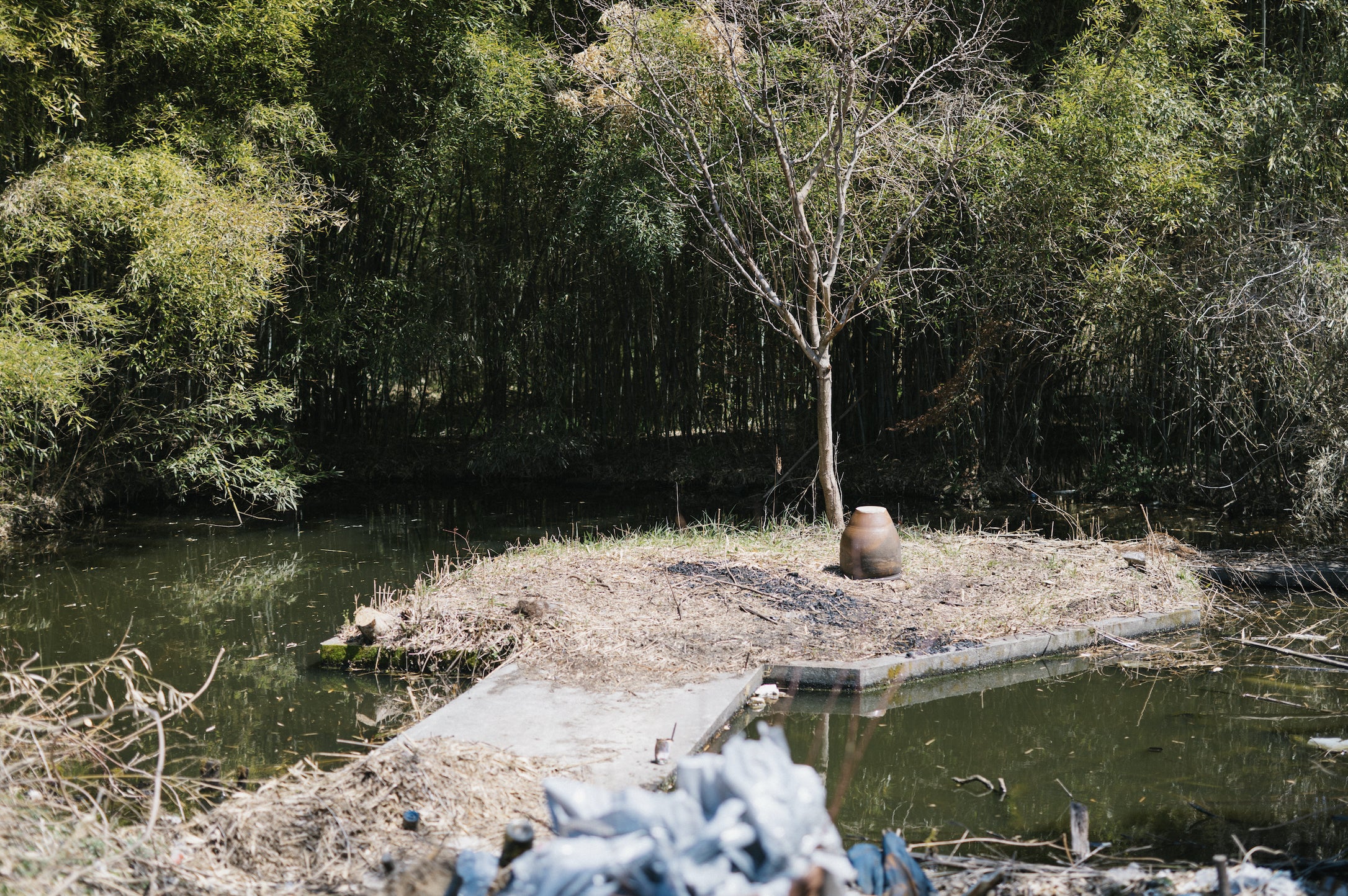 庭にある大きな池。水は湧水なので本格的に清掃すれば相当綺麗になるはず。