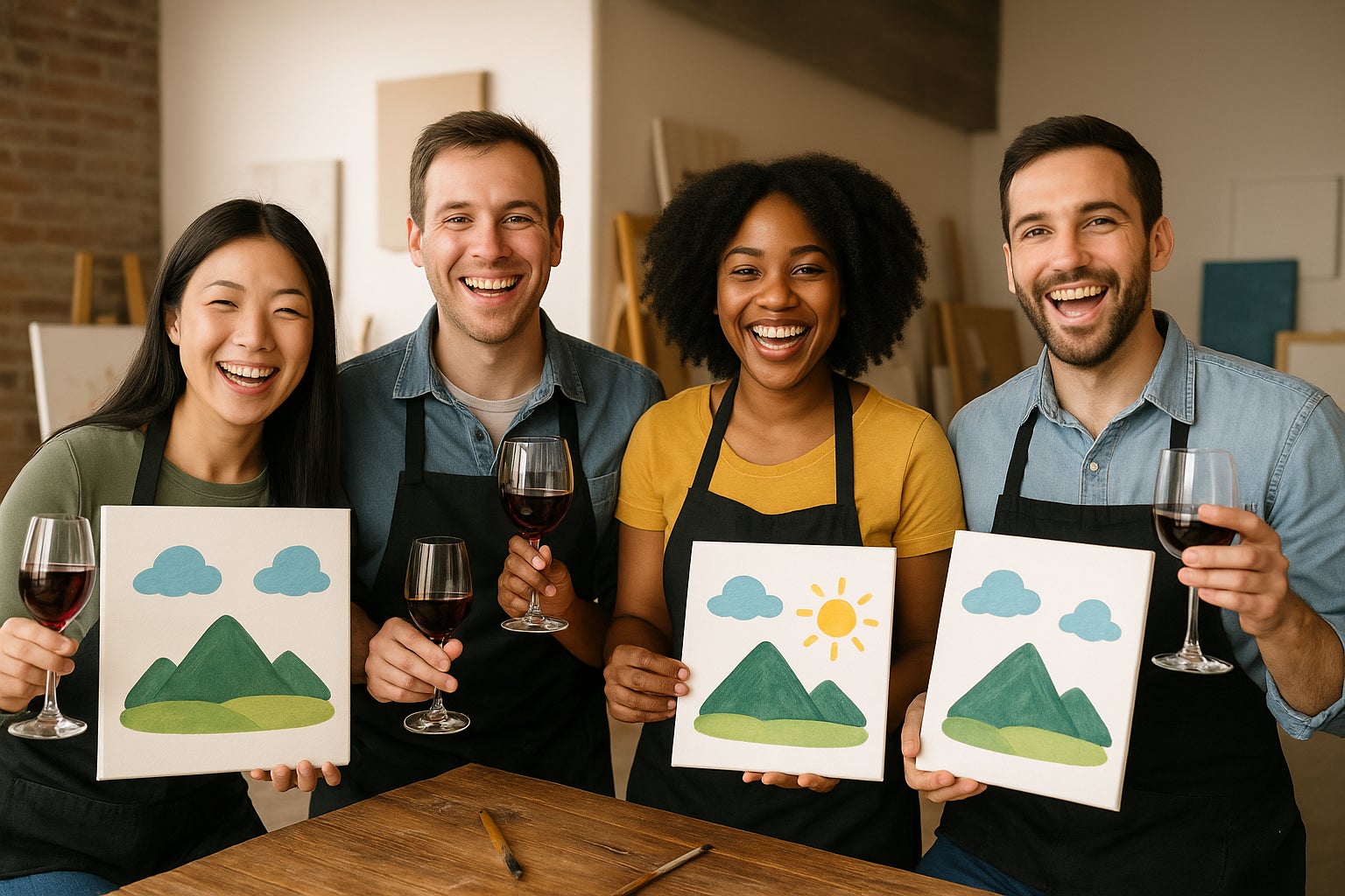 アメリカの若者たちの間で6年ほど前からブームとなり、いまや世界中に広がりつつあるこのスタイルは、「絵画(Paint)」と「ドリンク(Sip)」を組み合わせた、気軽に楽しめるアートワークショップです。インストラクターの指導のもと、ワインやジュースを片手に絵を描き、自分だけの作品を完成させる――そんなカジュアルな体験が、リスキリングの一環として、あるいは非日常を楽しむ場として、広がりを見せています。