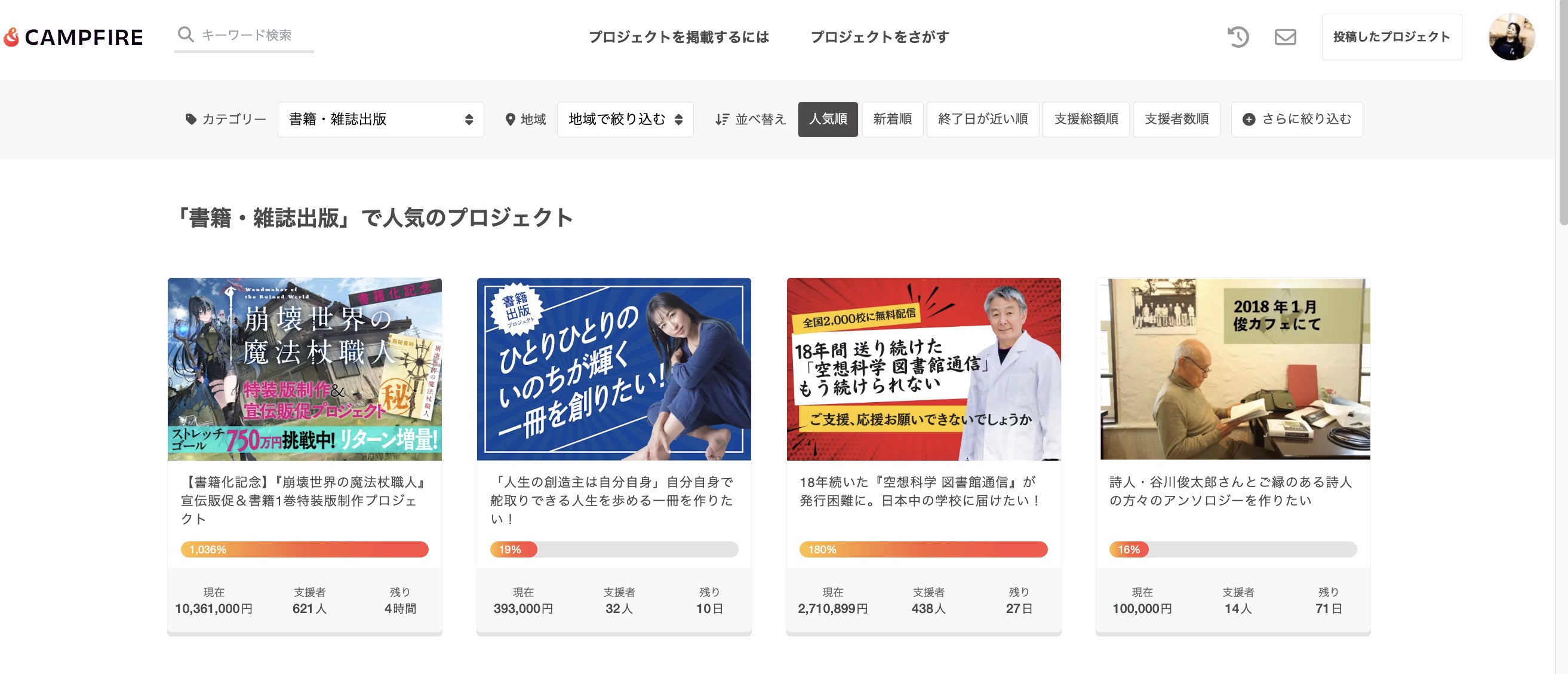 (CAMPFIREさんの「書籍・雑誌出版」カテゴリーで人気のプロジェクトに入れていただきました!)