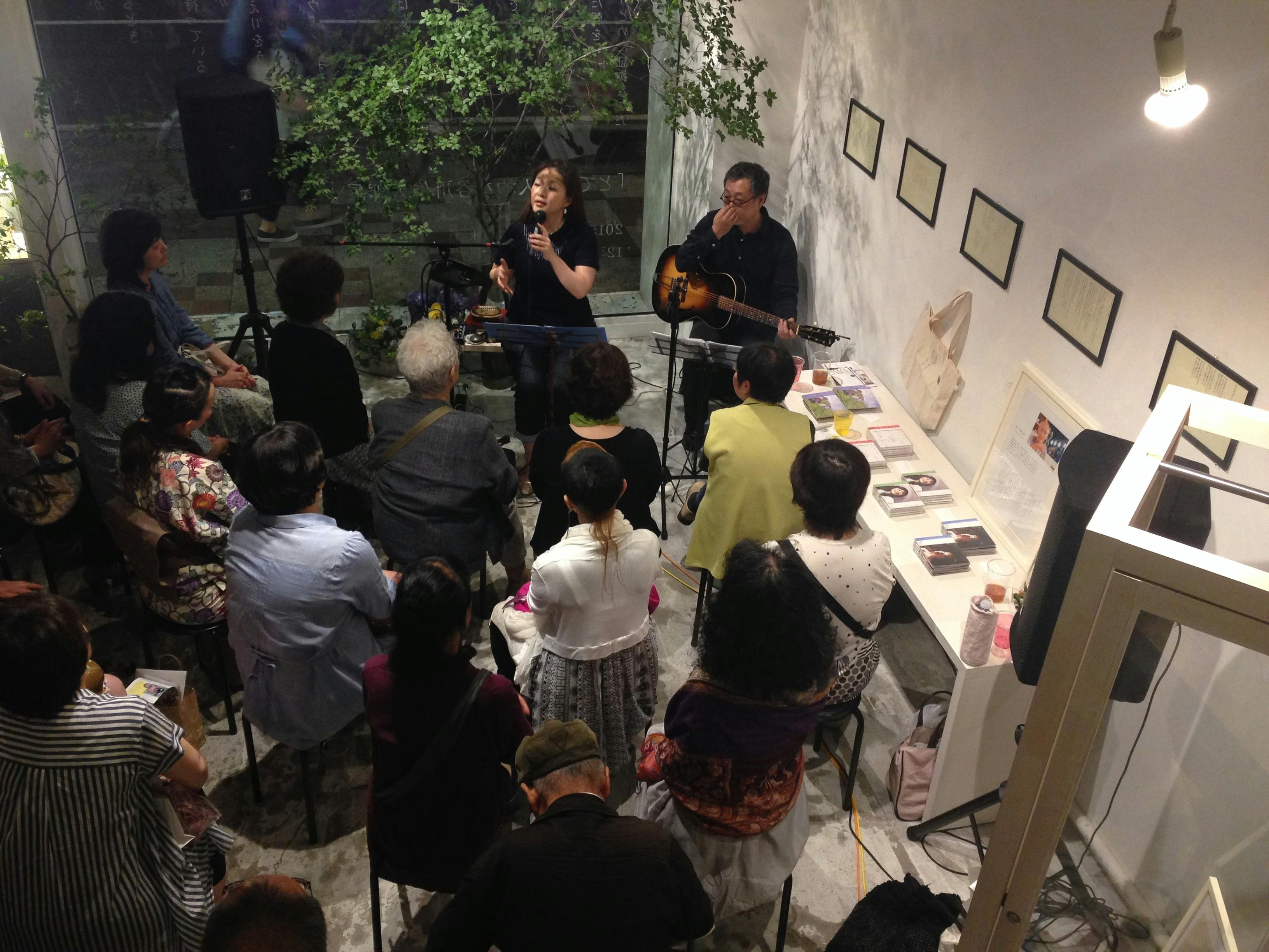 2015年、友人のギャラリーで「とても個人的な谷川俊太郎展」を開催。延べ1000人以上のお客様がきてくださり、さらにはまこりんが、オール谷川俊太郎のソロライブを開催してくれました(サポートには、札幌で活躍するミュージシャンの扇柳トールさんがついてくださいました)。会場いっぱいに集まったお客様に、素晴らしい歌声を披露してくれ、俊太郎さんの詩を歌で聴く喜びも届けてくれました。