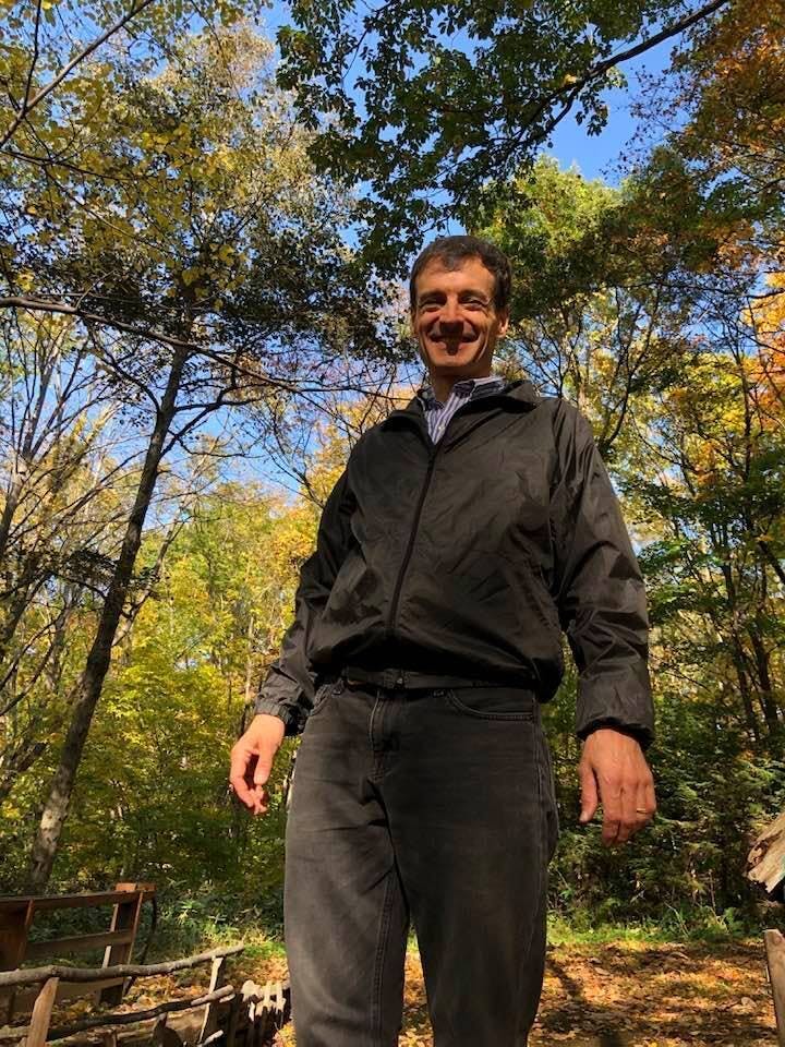 この子どもたちへのお話が終わったあと、私たちは美味しいスープカレーをいただき、園の外にある森へ。アーサーさん、とっても生き生きと美しい紅葉の自然を楽しんでいらっしゃいました。(参加者さんと相撲を取ったりもしていました。明るい)