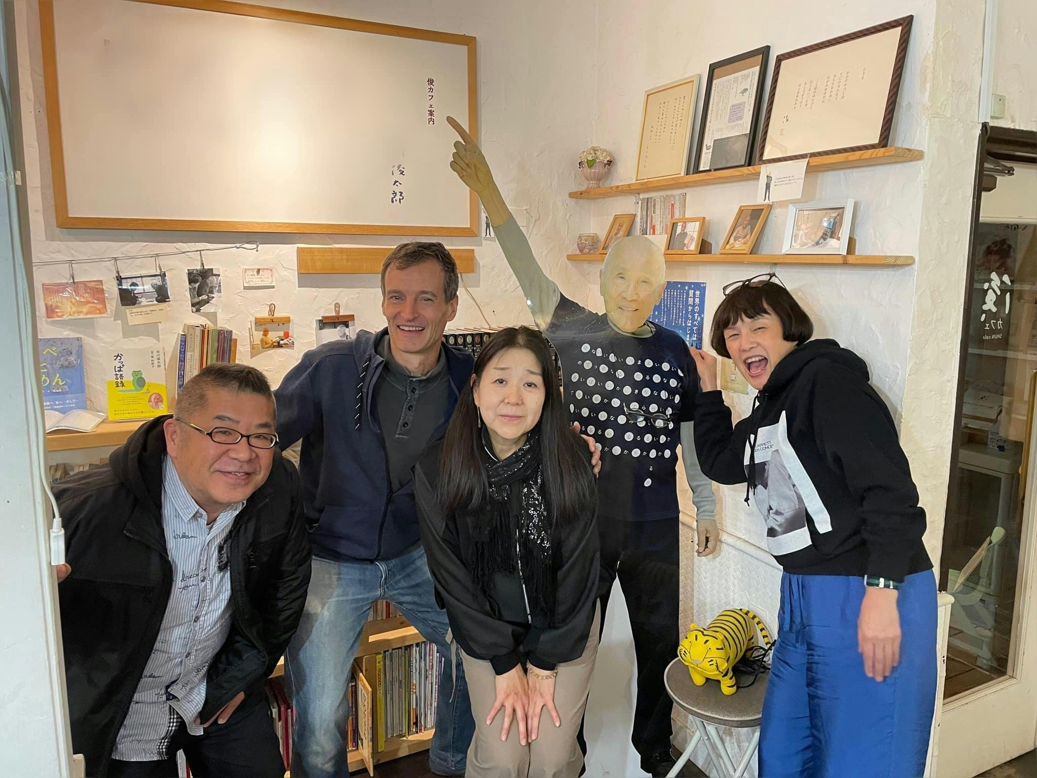 次にお会いしたのは、本当に偶然でした。俊カフェはKAKU IMAGINATIONという古い木造の建物の2階にあるのですが、1階には美容室と、昼はチーズ屋さん、夜はサルティンバンコという飲み屋さんになるお店が入っています。2024年10月、札幌にいらしていたアーサーさんが、偶然このサルティンバンコに食事でいらしたんです。「僕は詩人なんです」という言葉を聞いた店長さんが、俊カフェのことをご案内。その足で2階に上がってきてくださったのでした。すでに閉店後の片付けも終わり、帰り支度をととのえて、あとは電気を消すだけ…というタイミングで、お仲間と一緒に入ってこられました。「すみません、もう閉店でして………アーサーさんじゃないですか!」と、ものすごく驚いたことを覚えています。